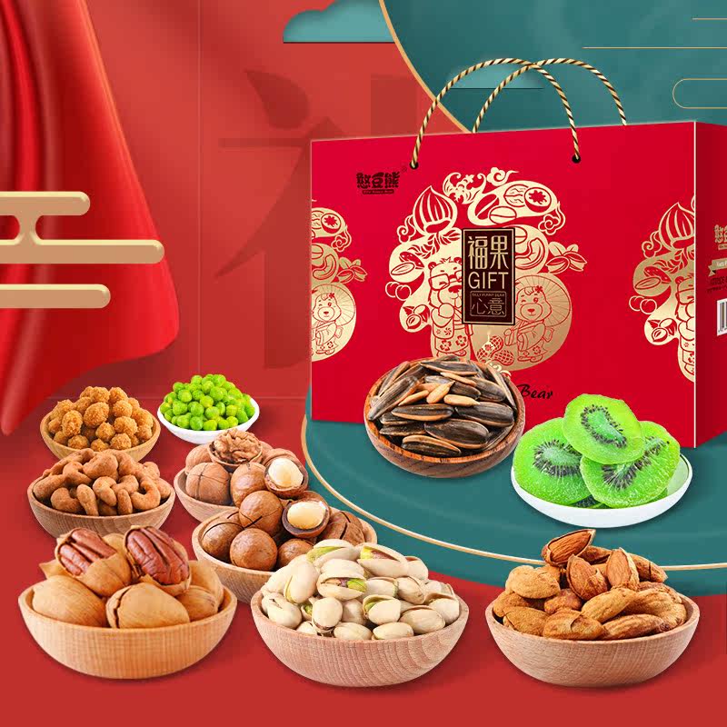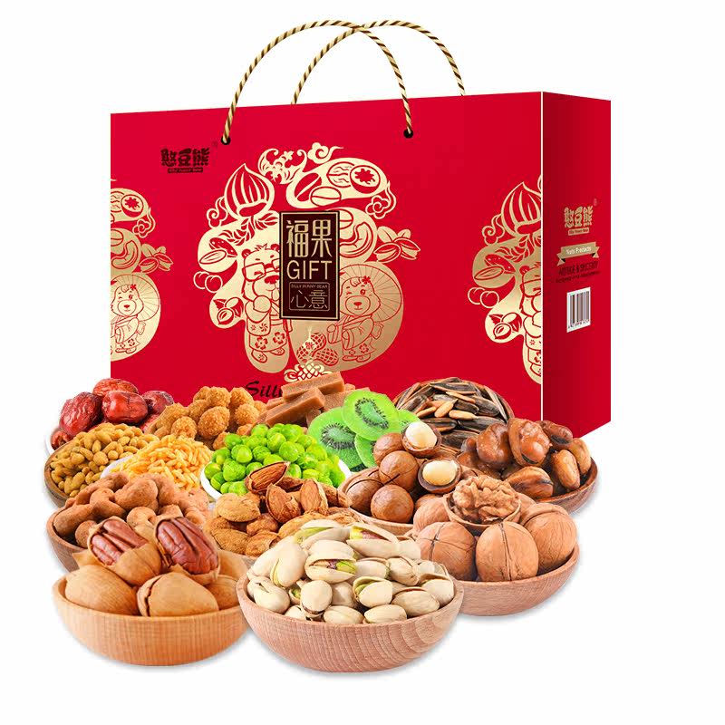 Nuts Gift Box Big Gift Bag 2062g 2062g 15 Bag Mixed Nut Fried Candied Fruits Snack complete box delivery Casual Food