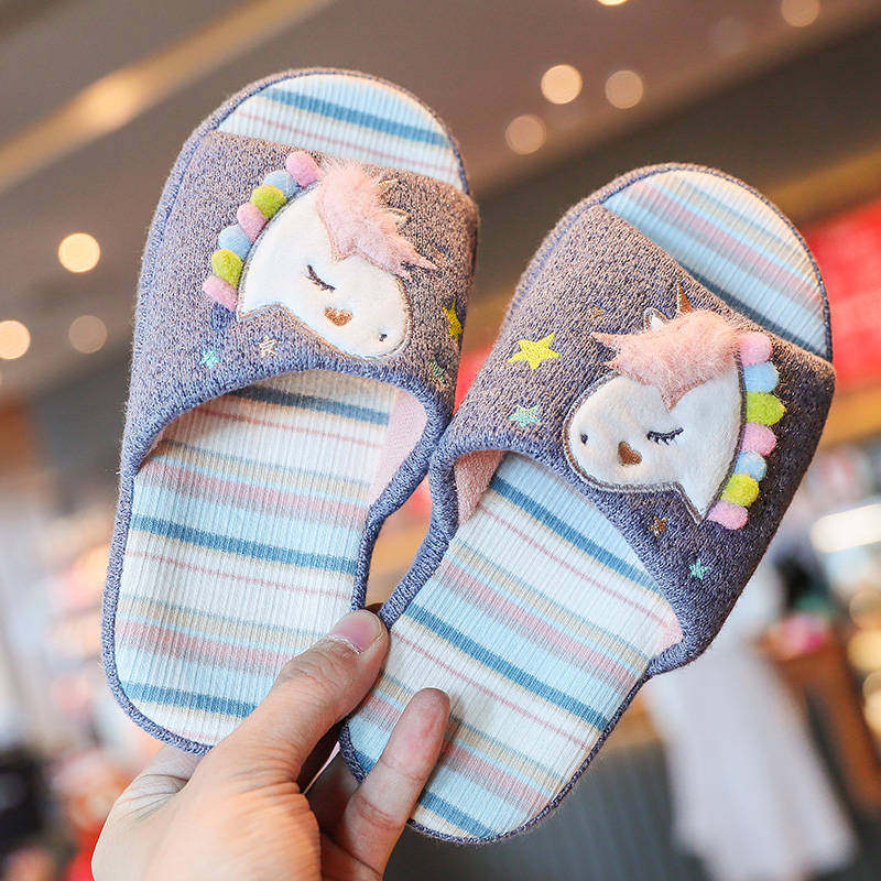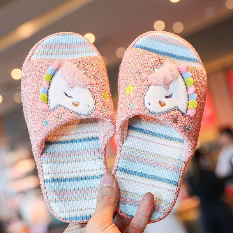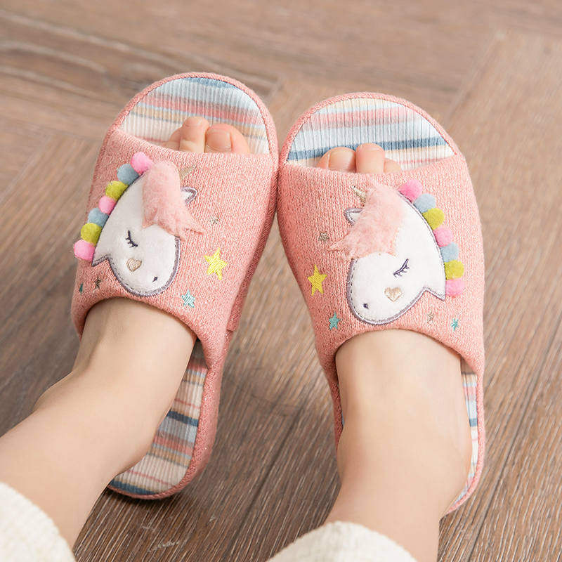 Children Slippers Spring Summer Girls Cute Home Non-slip Indoor Floor Princess Kid Unicorn Linen Slippers
