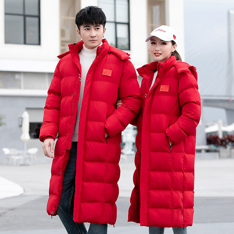 Cotton men's long over-the-knee sports coat children's art examination and sports college sports students winter training cotton clothes custom cotton jacket