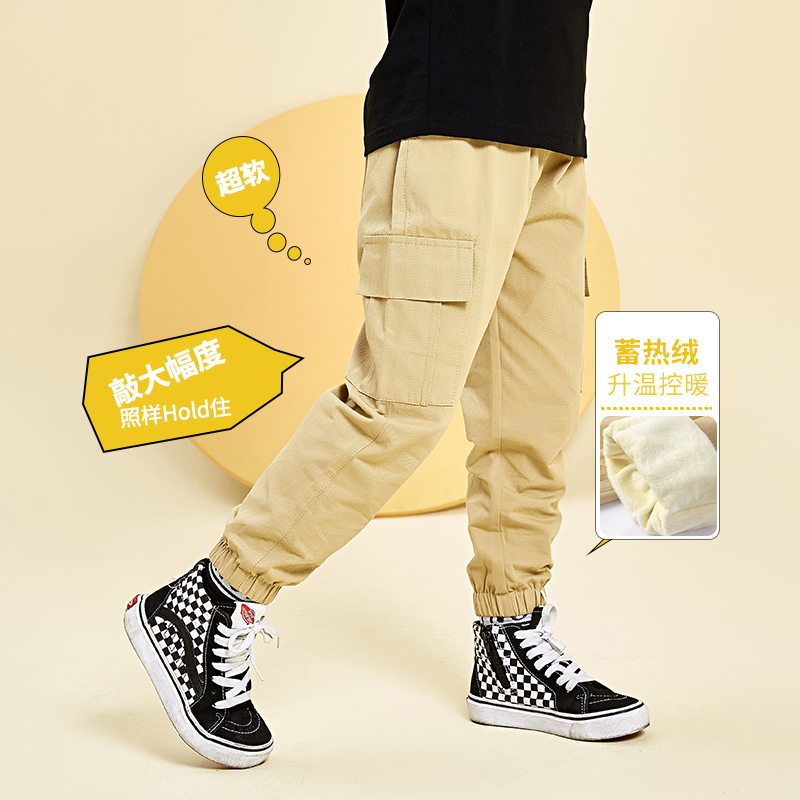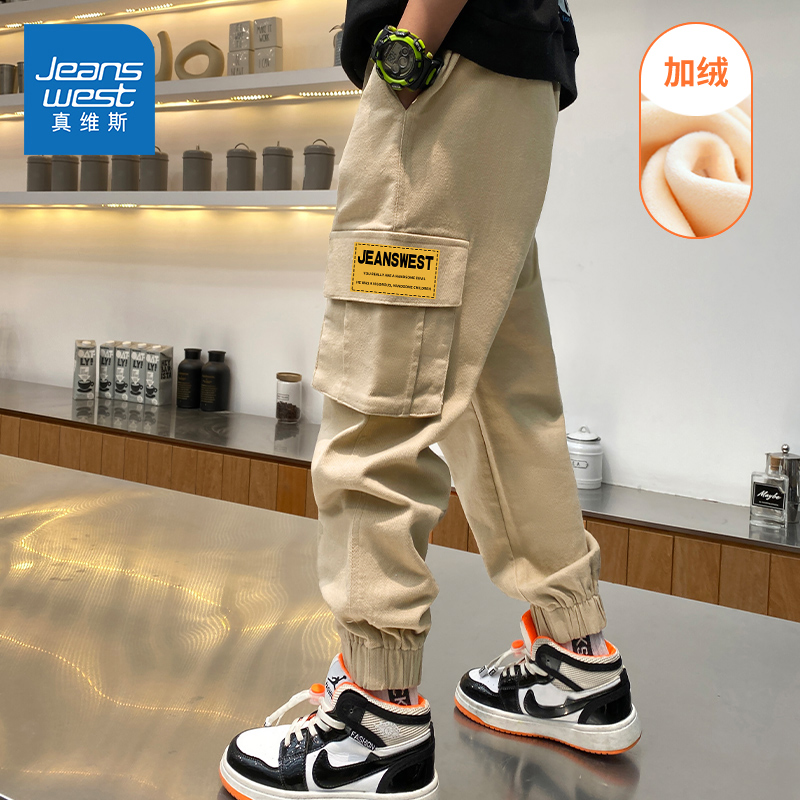 Real Vis Boy Pants Plus Suede Thickened Winter 2022 New CUHK Child Black Casual Pants Children Workwear Pants