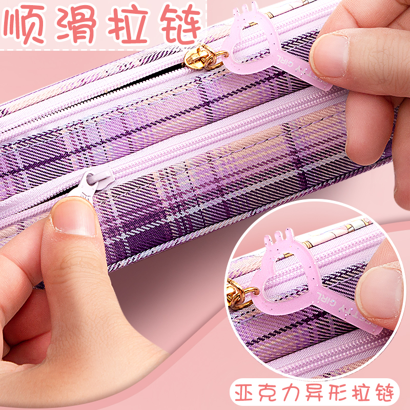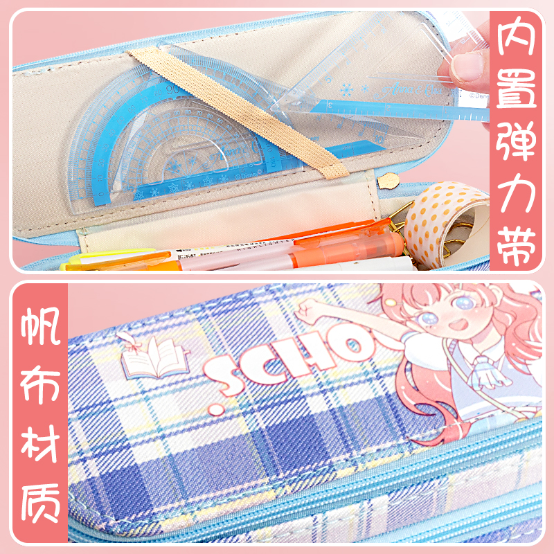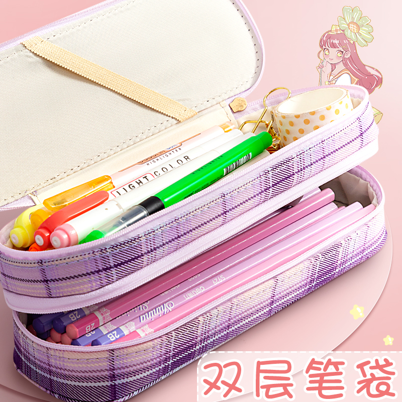 Large-capacity pen bag Girls thickened Double-layer pencil case Girls primary and middle school students with learning pencil containing box durable Cornetto function Jane Joins pen case multifunction new pencil bag female