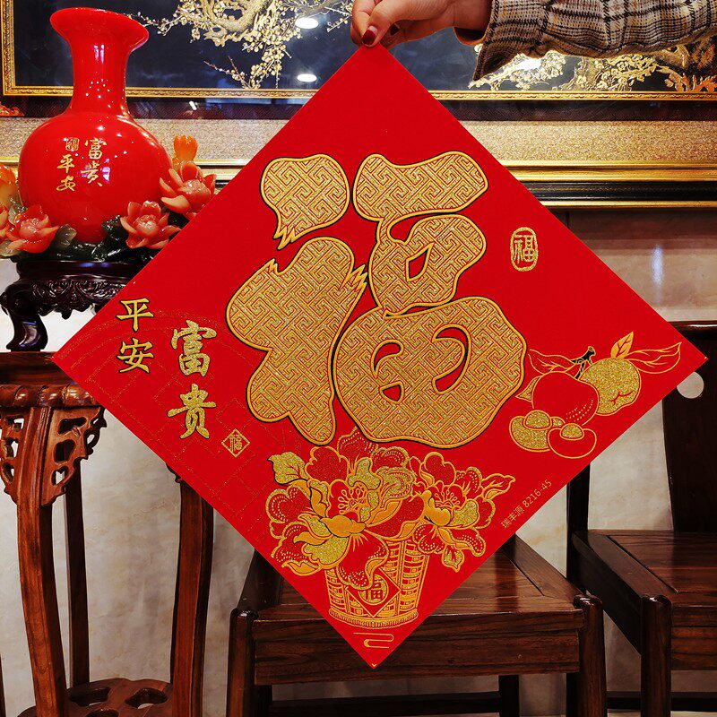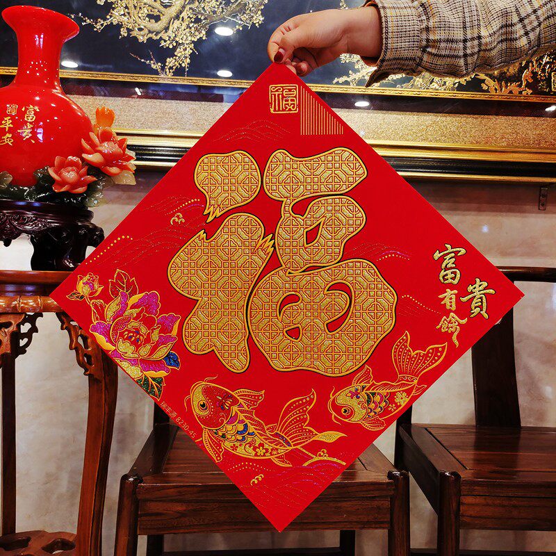 Forword door post 2023 Rabbit New Year's New Year Spring Festival Decorative Wall Stickup Year Painting Suede Gate Fu Character Sticker-Taobao
