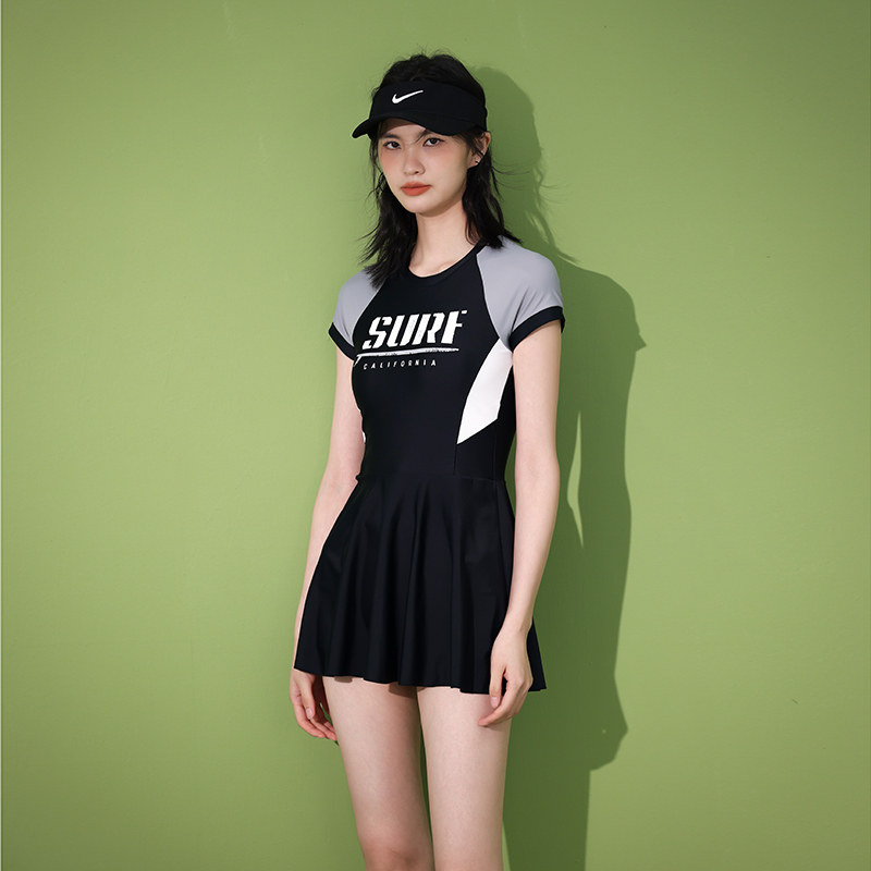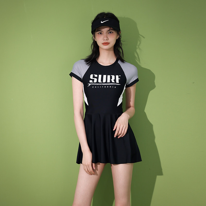 One-piece swimsuit women's summer conservative 2023 new hot style students look thin conservative skirt seaside sports swimming suit women