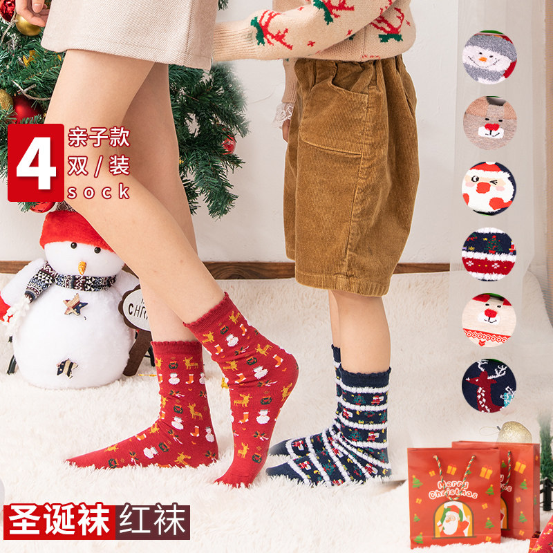 Antarctic Christmas socks female cartoon cute red three-dimensional doll in the tube socks parent-child autumn and winter straight socks Q