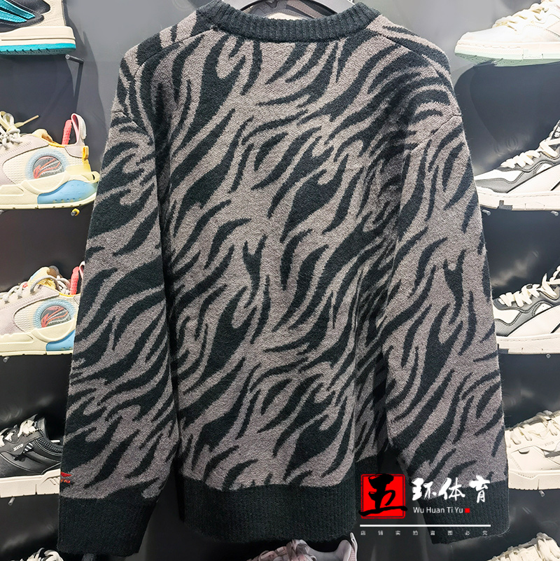 Li Ning Wei coat 2022 spring new day into the bucket gold male and female tiger leather tattoo loose cover knitted sweatshirt AMBS031