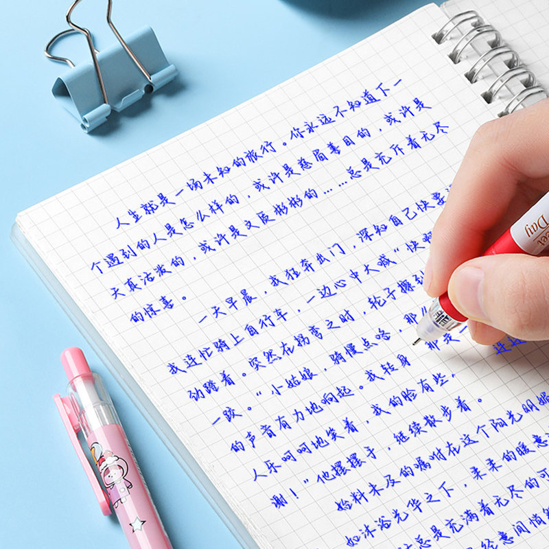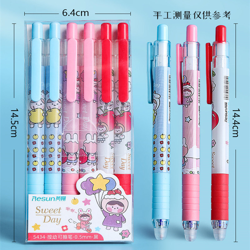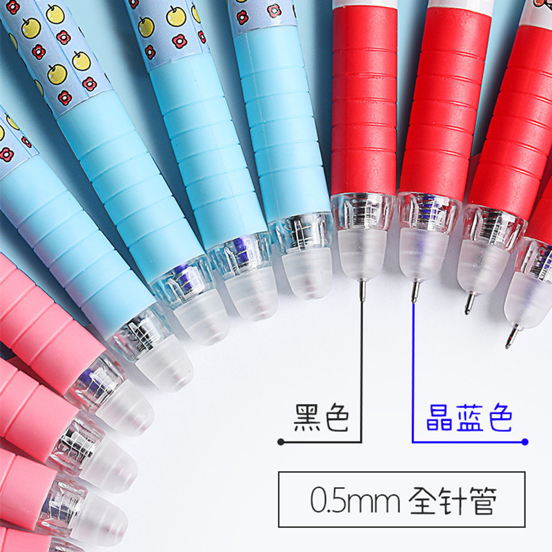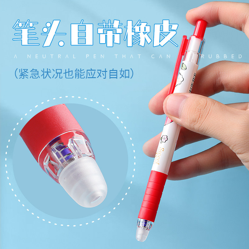 Primary school students use erasable gel pen 3-5 grades hot erasable push-type crystal blue 0 5mm full needle tube cartoon cute moyi sassafras press-type water-based pen black girl heart heat-sensitive refill grinding force