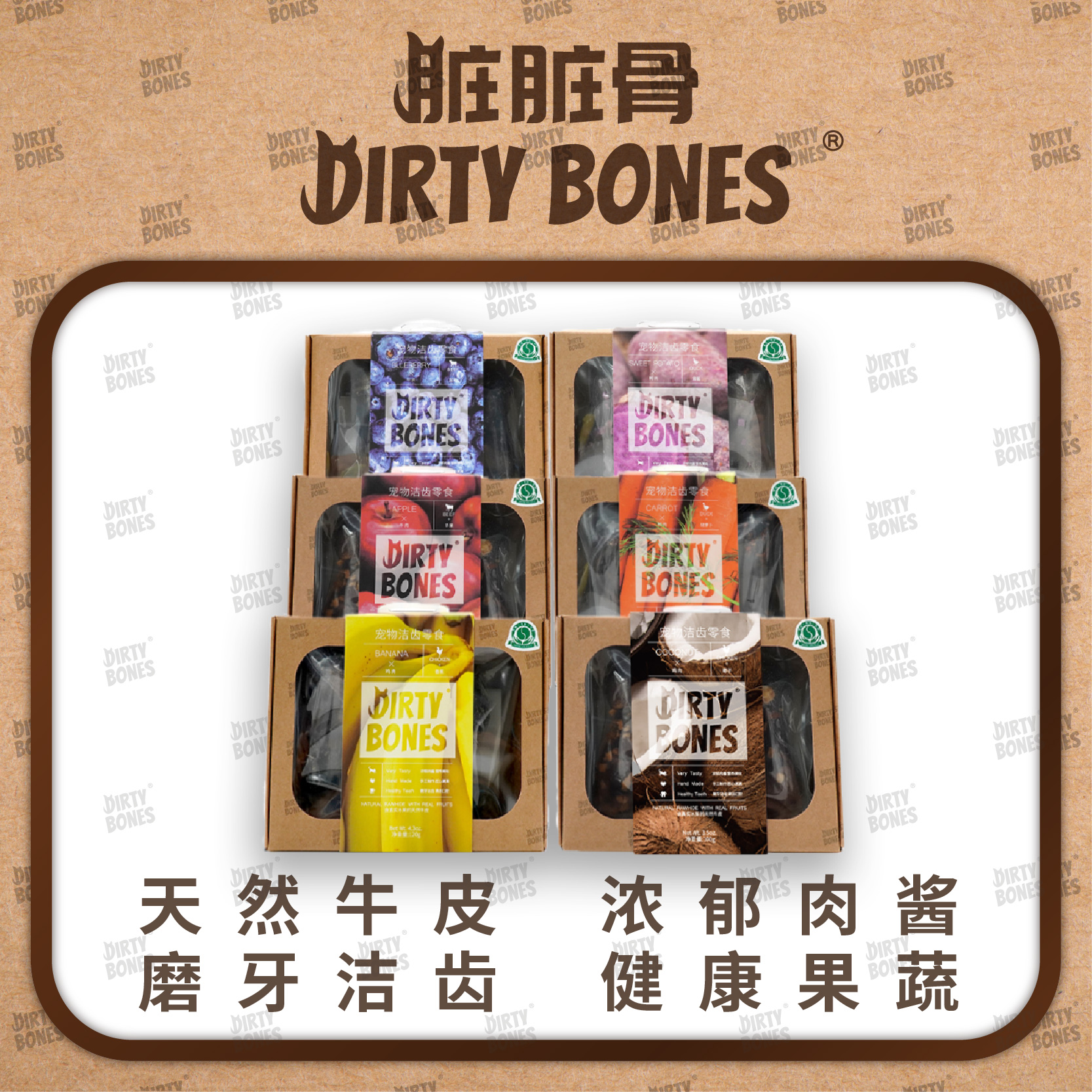 Dirty Dirty Bone Beef Apple 3 Inch Knot Bone Beef Apple 4 Inch Knot Bone Dirty Bone Chicken Banana 3 Inch Bone Dirty Bone Chicken Banana 4 Inch Knot Bone Dirty Dirty Bone Duck Meat Carrots 3 Inch Knot Bone Dirty And Dirty Bone Duck