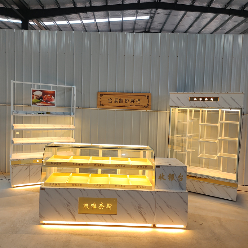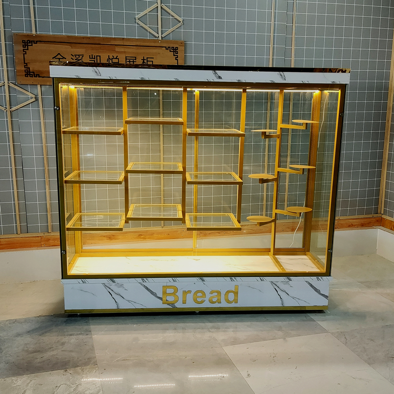 Bakery cake model display cabinet birthday cake sample counter imitation marble solid wood glass display cabinet customization