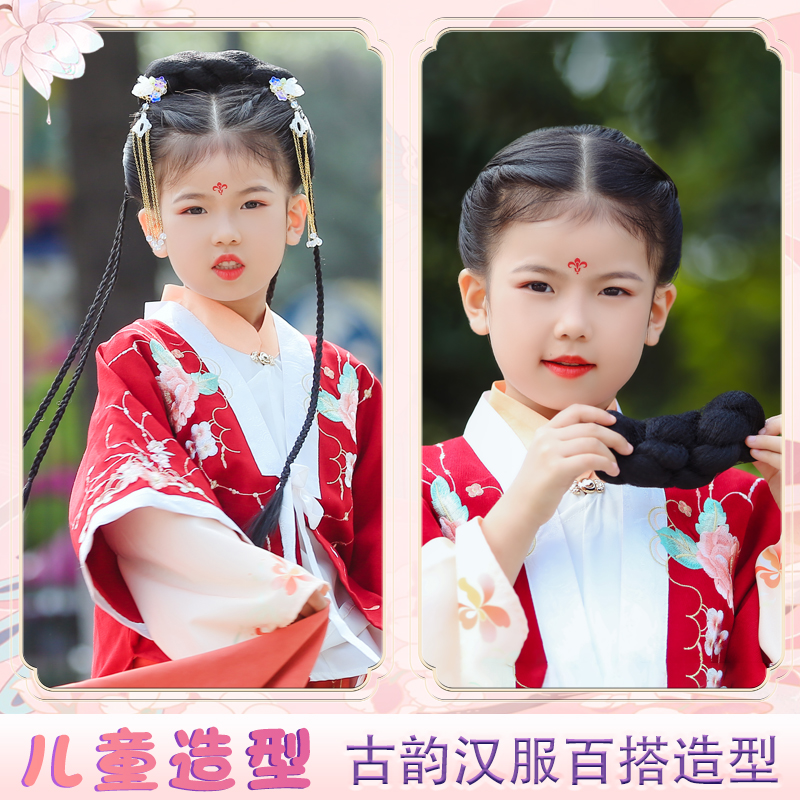 Ancient Dress Wig Children No Base Soft Hemp Flower Hair Bag Ancient Wind Hanfu Girl Common Braid Cushion Hair 100 Hitch