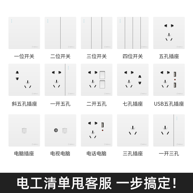 Five holes (limited purchase of 1) Multi-shooting of no inclined five holes (limited purchase of 1) Multi-shooting of no five-hole socket inclined five-hole socket Three-hole 16A (air conditioning water heater) Seven-hole socket Five holes