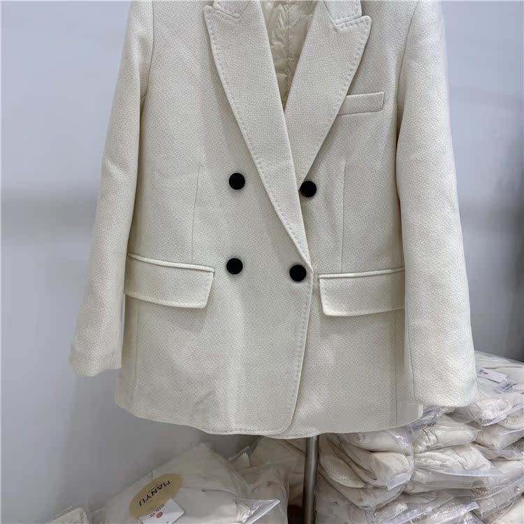 8090 clothing B21682-2 Korean version of Joker temperament double-breasted niche wool down blazer jacket women tide