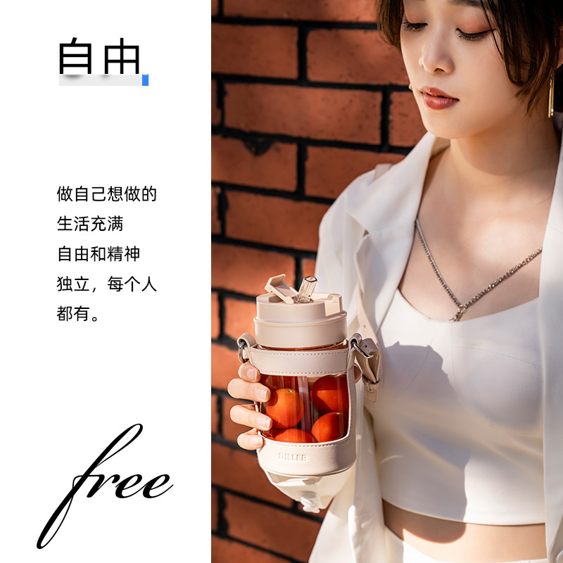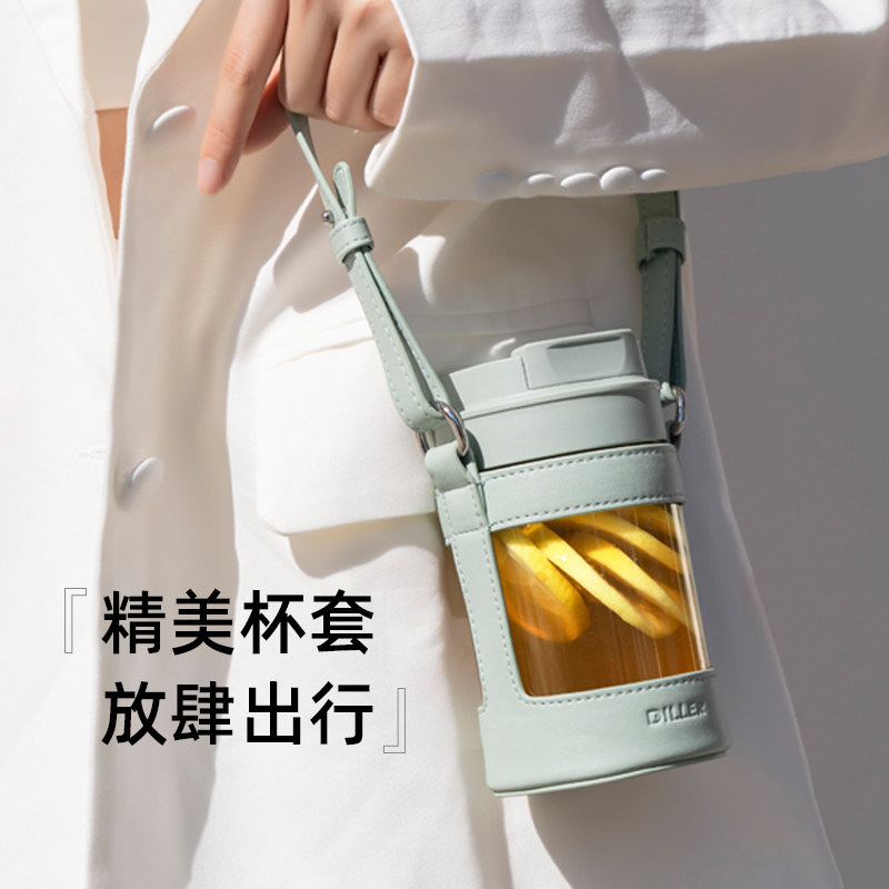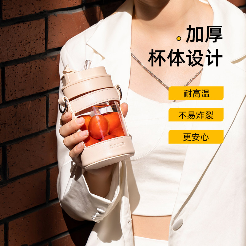 Swedish cica glass water glass female summer portable coffee cup double drink with straw high face value cup design small crowdsourced