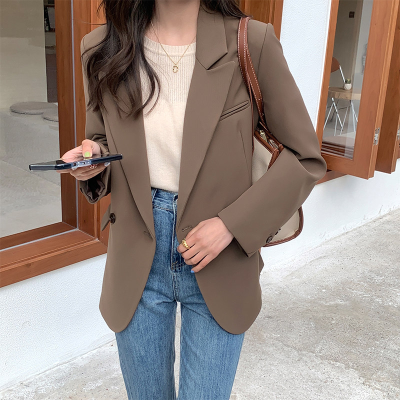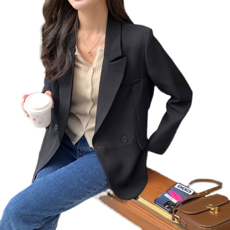 Korean suit top 2022 spring and autumn commuter fried street casual all-match loose coffee color double-breasted suit jacket women