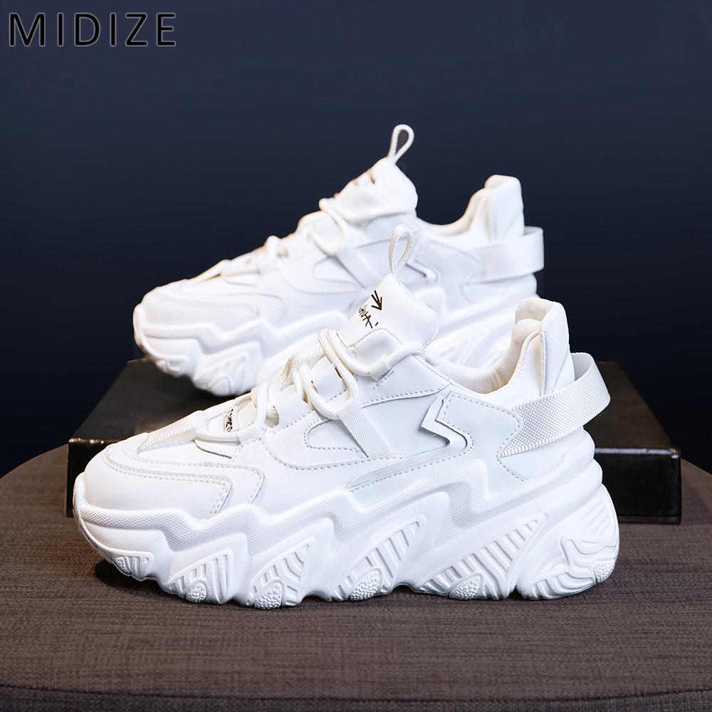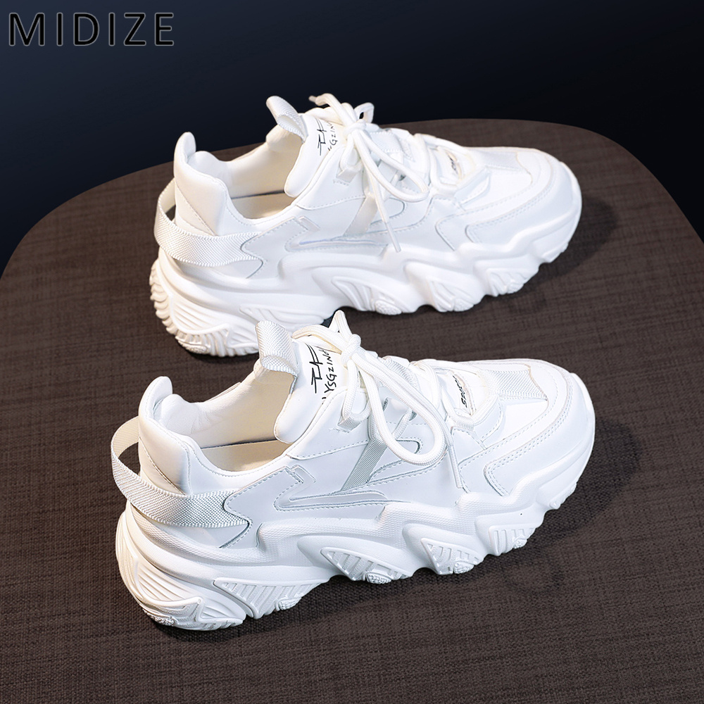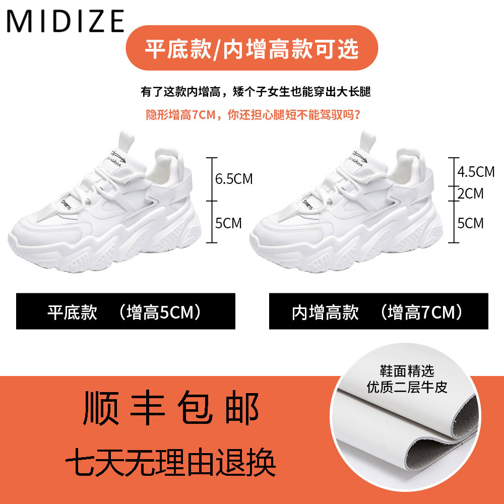 MIDIZE daddy shoes leather shoes trendy ins women 2022 new autumn white shoes women's heightening sneakers