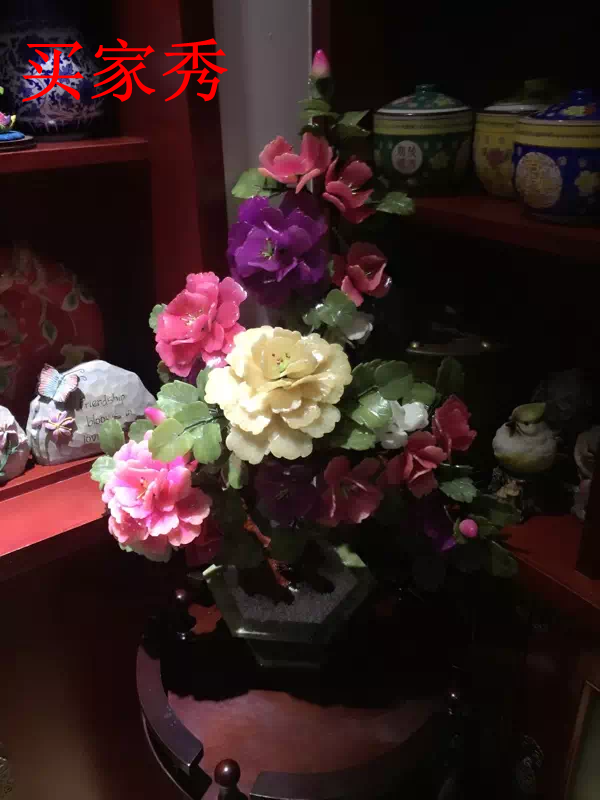 Jade Big Peony Flowers Bonsai Living Room Modern New Chinese Style Home Decoration Products Creative Jade Flower Shelf Jade Sculpture Pendulum