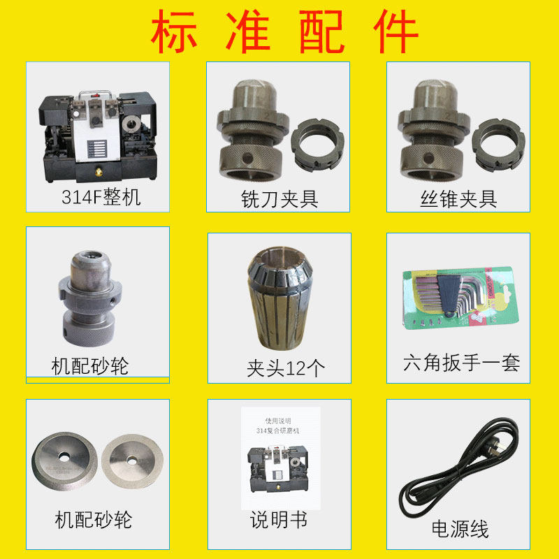 313F drill knife grinding machine 314 milling cutter grinding machine 330 fast drill grinding machine 314F composite grinding machine screw tapping grinding wheel (required to buy) Round nose knife grinding wheel (required to buy) milling cutter knife