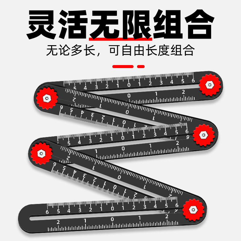 Multifunctional six-fold ruler universal folding ruler tile glass drilling positioner universal aluminum alloy woodworking drawing ruler