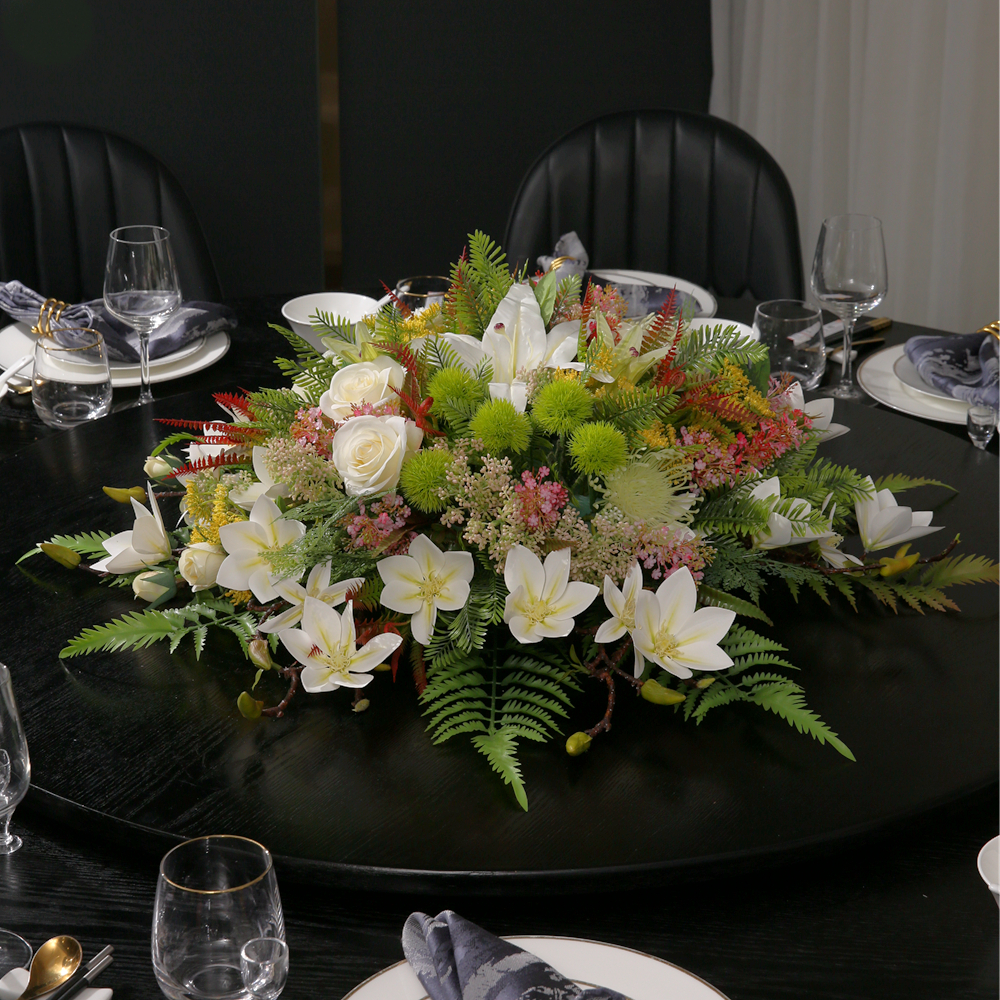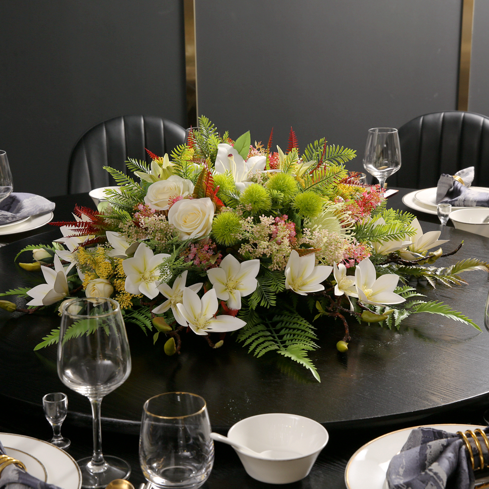 High-end hotel table flower decoration dining room large round table middle turntable decoration flower conference table fake flower light luxury