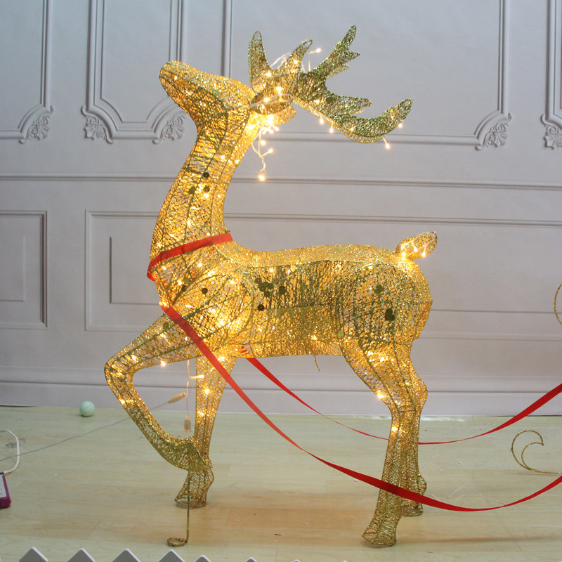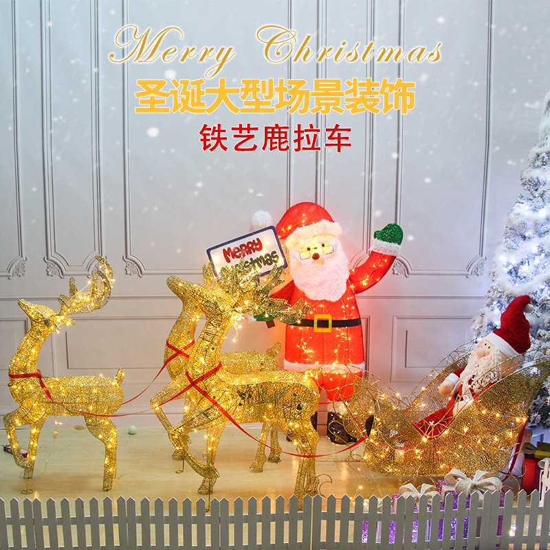 Christmas decorations deer cart set luminous elk decoration large scene arrangement Christmas tree decoration beautiful Chen