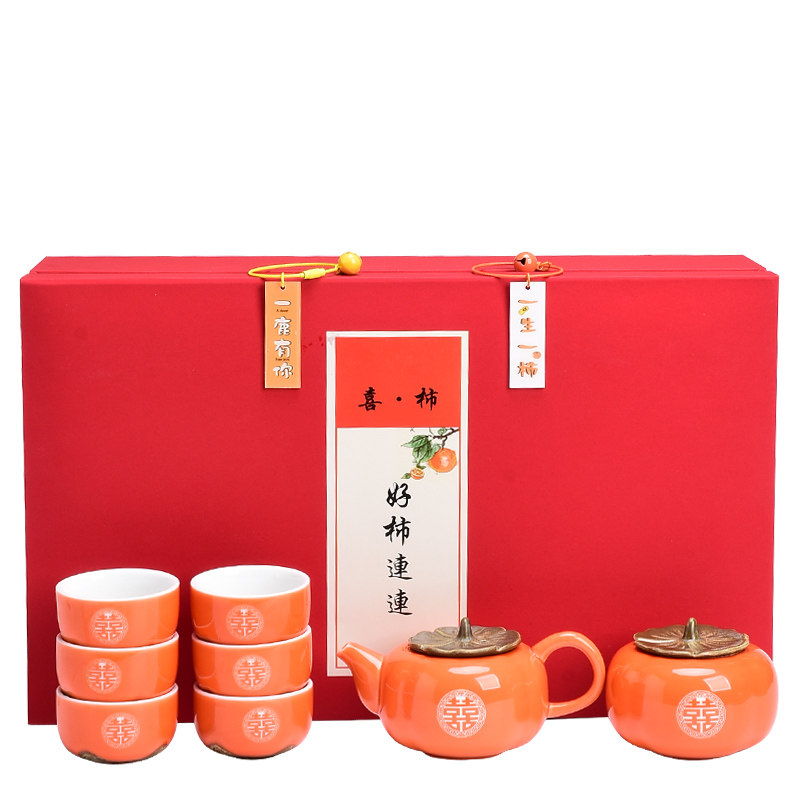 Haopersimmon Lianlian tea set (same style in the main picture) Haopersimmon Lianlian tea set gift box five gentlemen tea towel Haopersimmon teapot with six cups in a pot and plate Haopersimmon in a pot with six cups in a plate gift box Haopersimmon