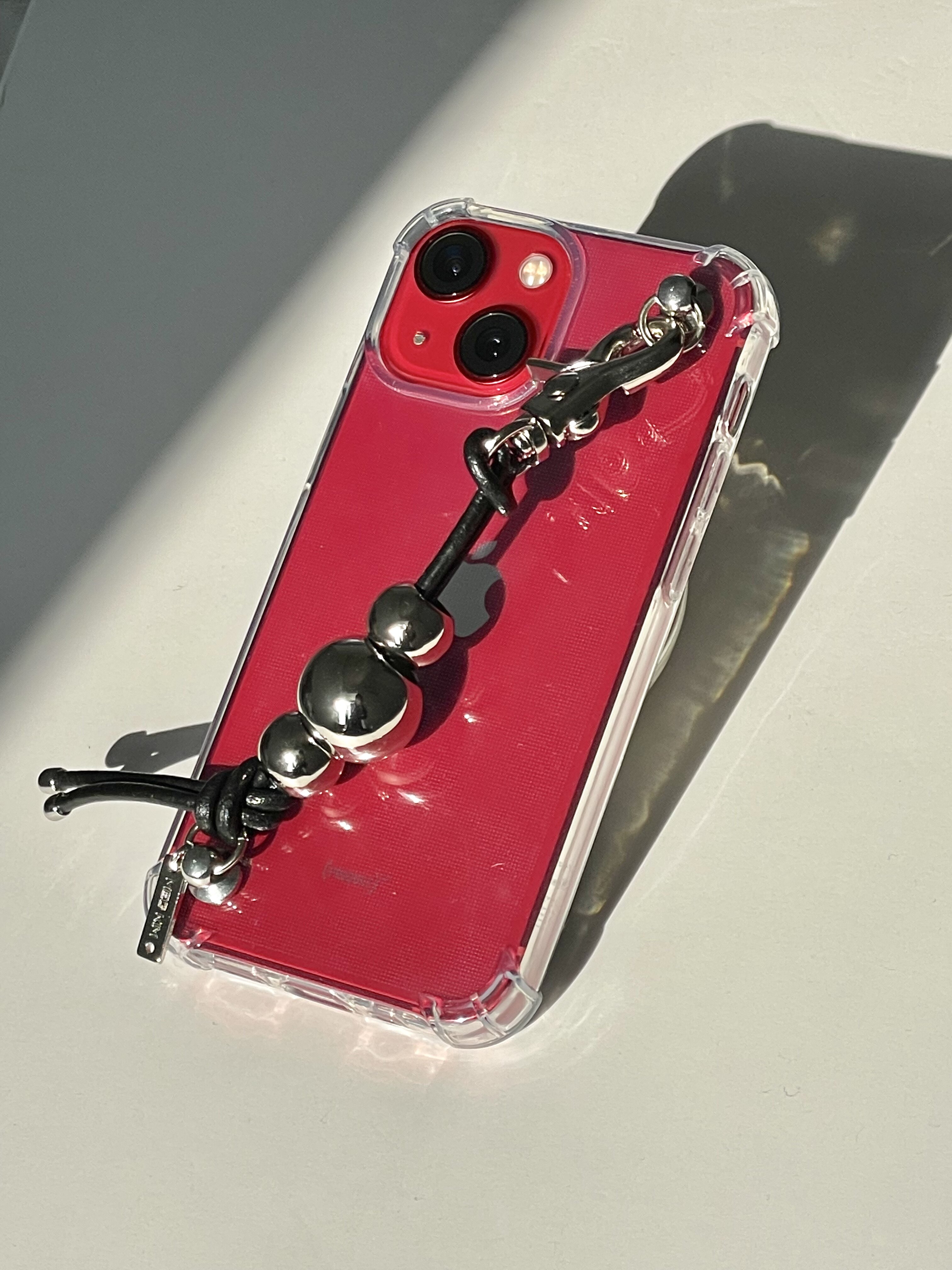 (Silver) Super Recommended High Brightness String Bead Chain Bull Leather Phone Protection Shell Cool Nice Hitch