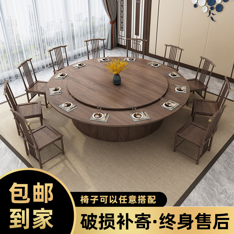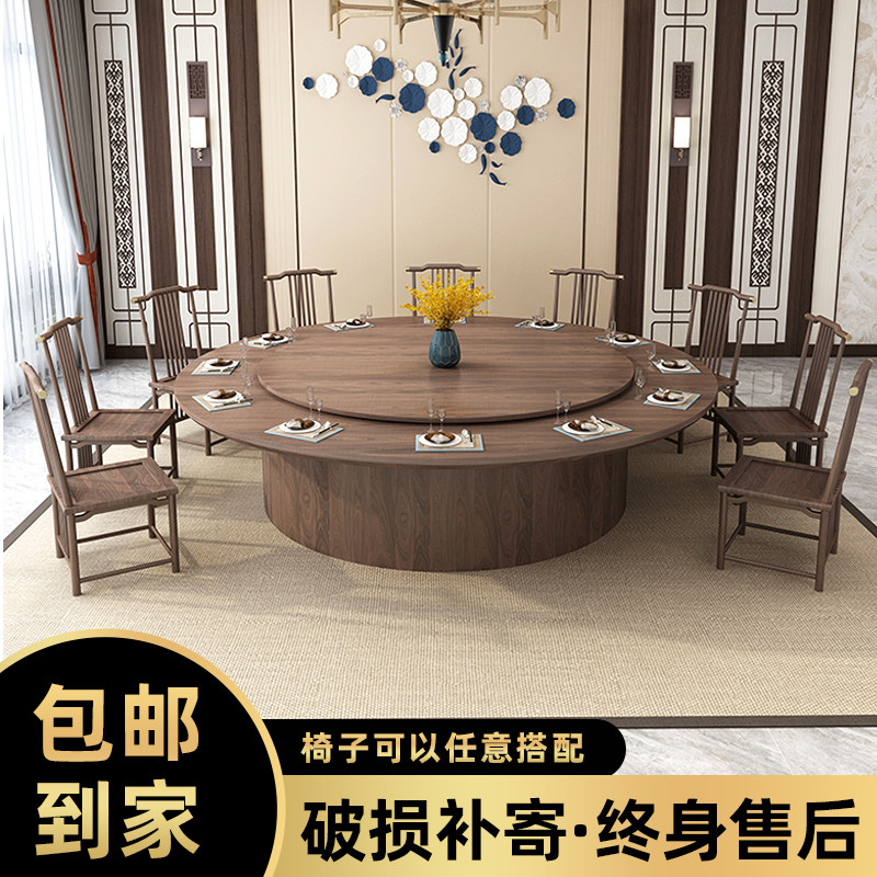 Chinese-style hotel dining table large round table electric large dining table round table and chair combination restaurant box 15 people 20 people with turntable