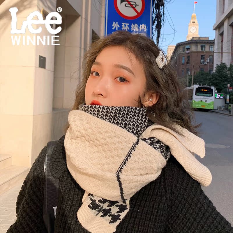 Winnie Lee Chidori double-sided plaid scarf women's winter Korean version tide all-match warm knitted woolen scarf men