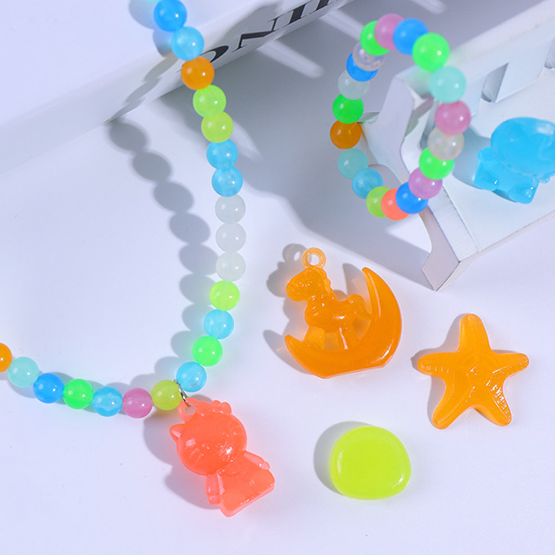 Gemstone toy luminous children's plastic color crystal glowing stone handmade diy wear beaded girl necklace