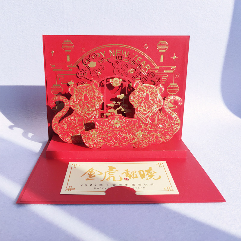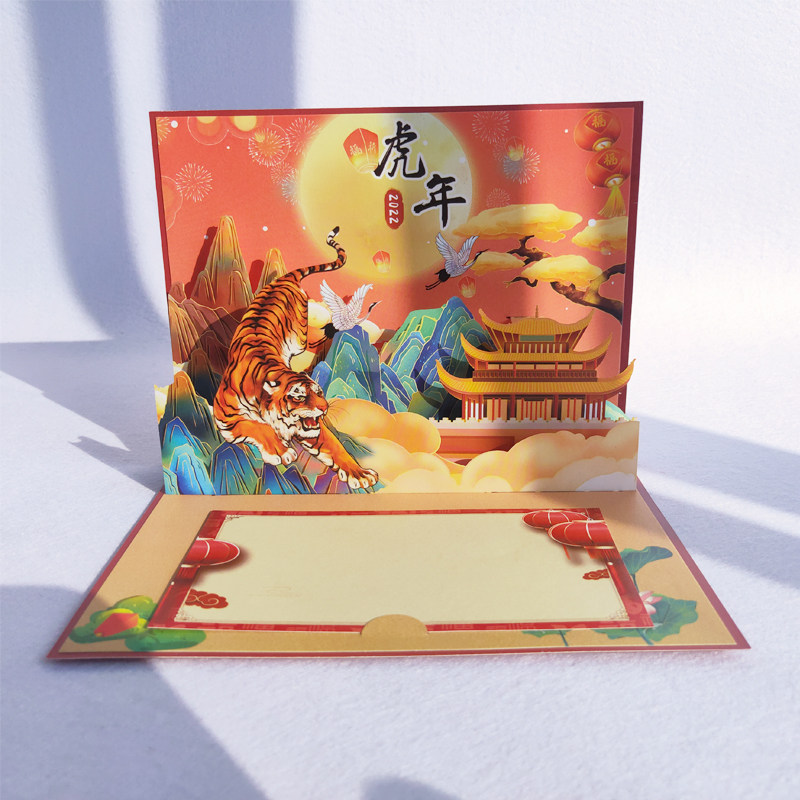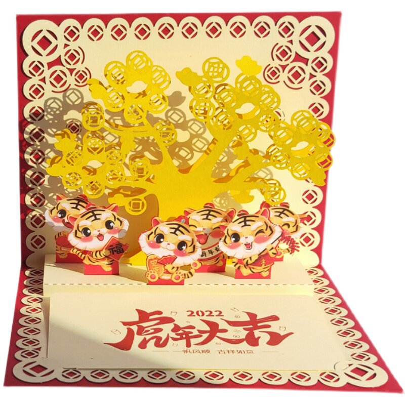 2022 New Year's three-dimensional greeting card tiger New Year's Day greeting new 3d card handmade paper sculpted corporate holiday blessing customisation
