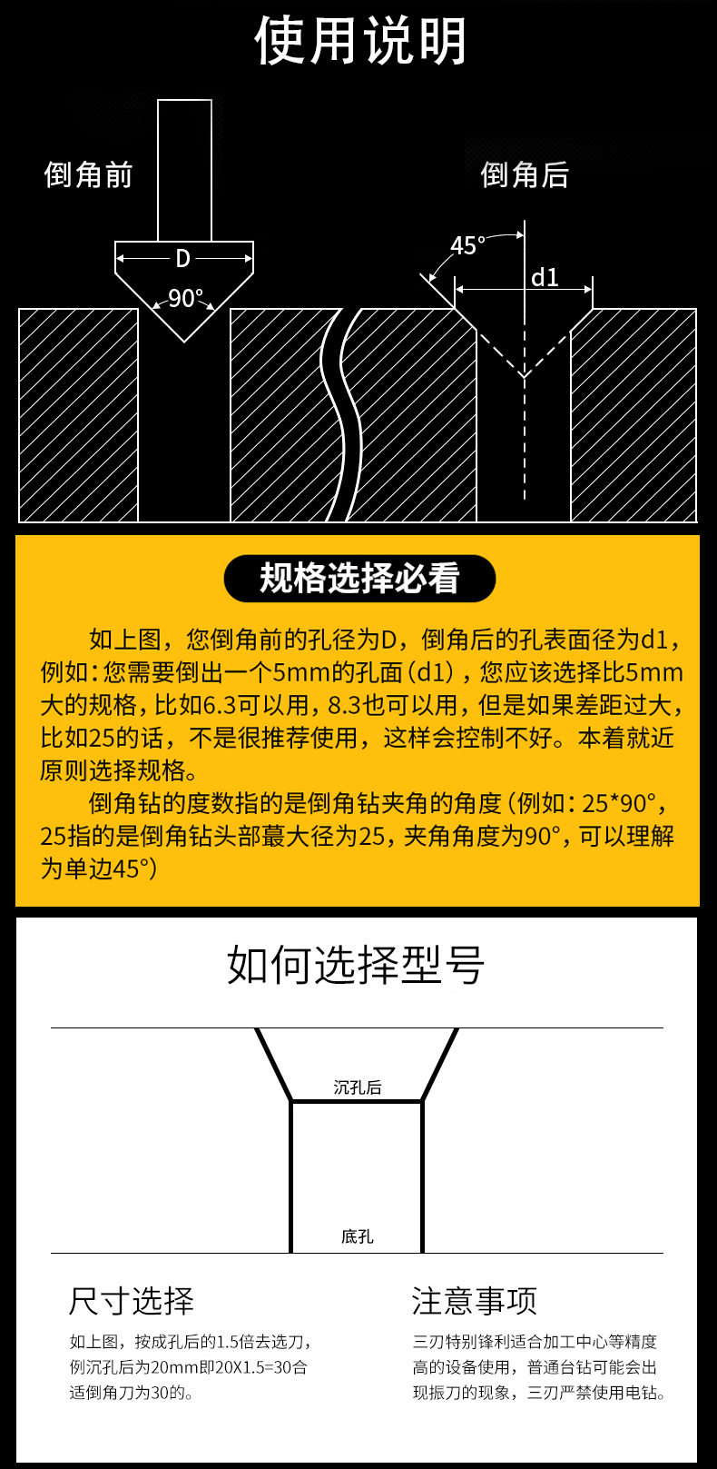 Scubi triple-edged single-edge chamfered knife deburring drill bit 120-degree chamfered deaper to expand inner hole stainless steel countersinking drill