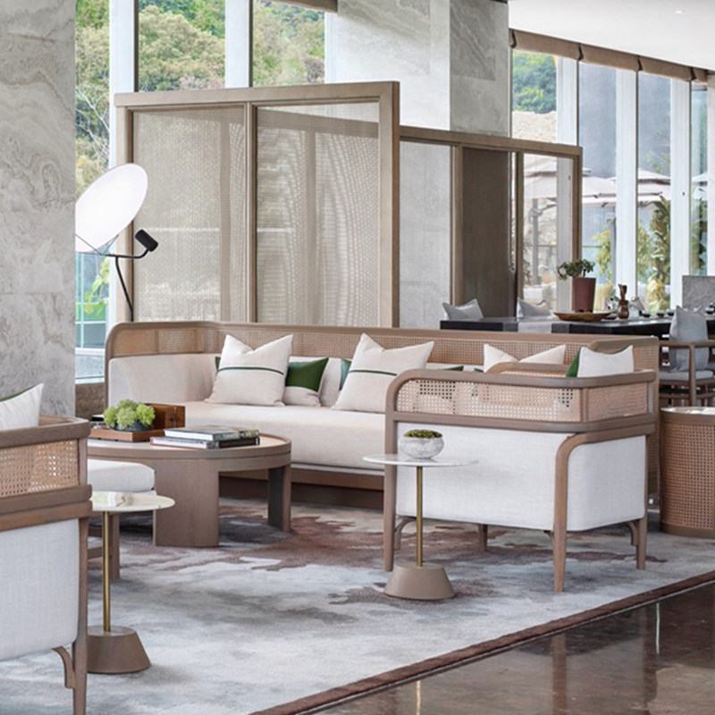 Sales Office Negotiation Sofa Modern Hotel Restaurant Club House Tea House Reception Card Seat New Chinese Style Solid Wood Rattan Furniture