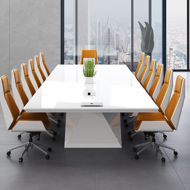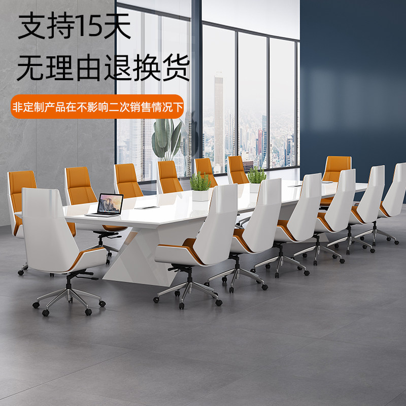 Conference table simple modern long table large and small negotiation table white paint conference room light luxury office desk and chair combination