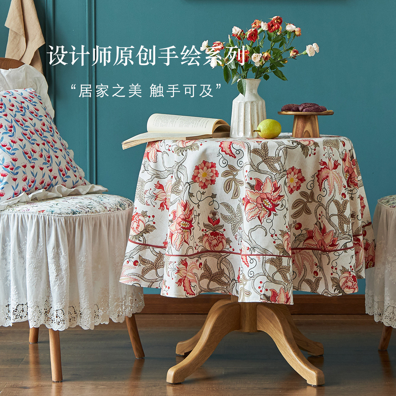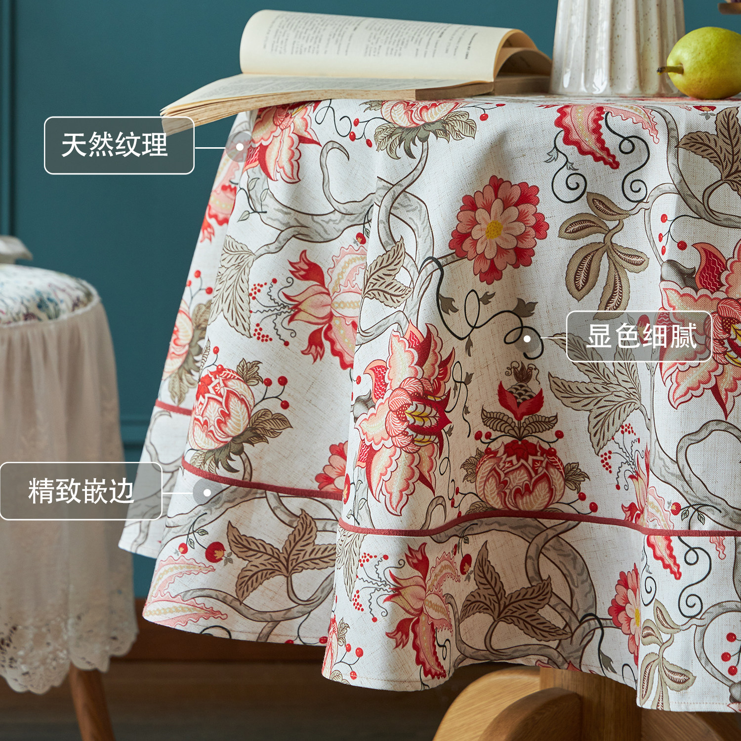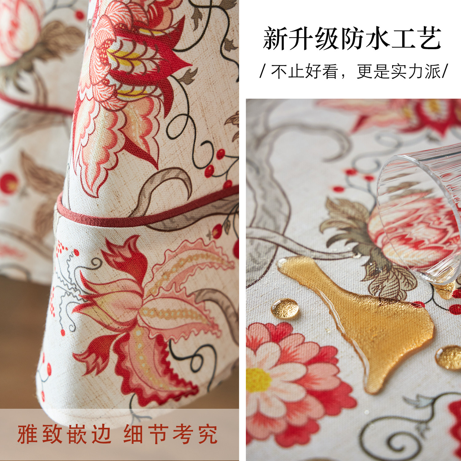 Waterproof tablecloth pastoral American round tablecloth rectangular tablecloth linen ins coffee table tablecloth light luxury advanced