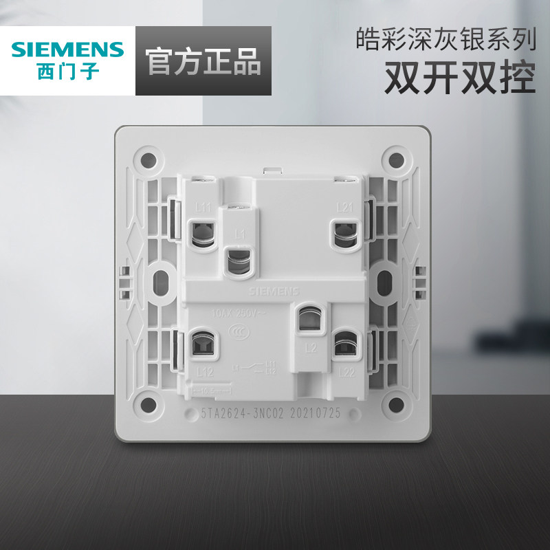 Siemens TWO DOUBLE CUT SWITCH DOUBLE OPEN ASSOCIATION HAO COLOR DARK GREY SILVER COLOR 86 TYPE HOME WALL FULL HOUSE PACKAGE PANEL