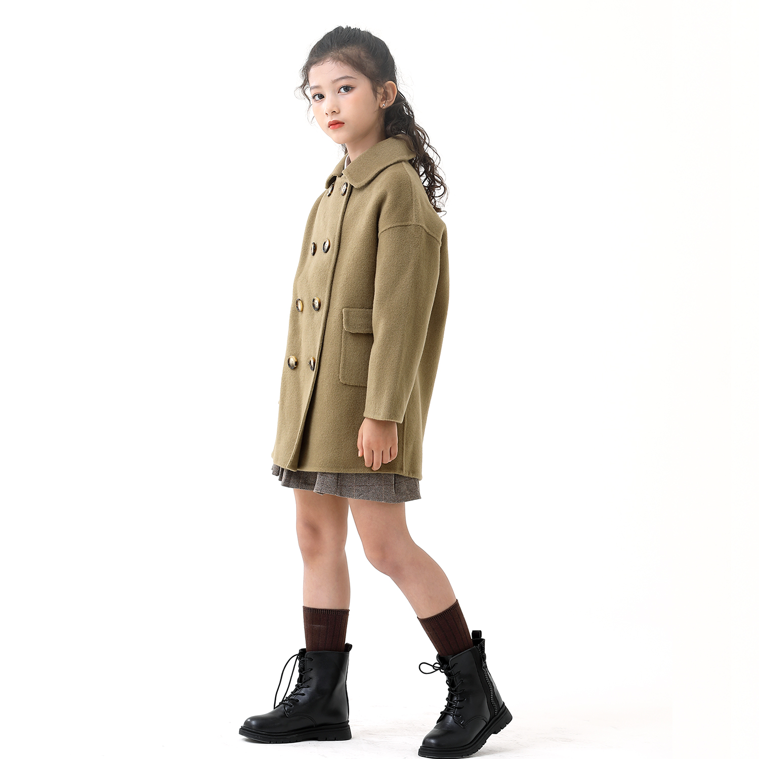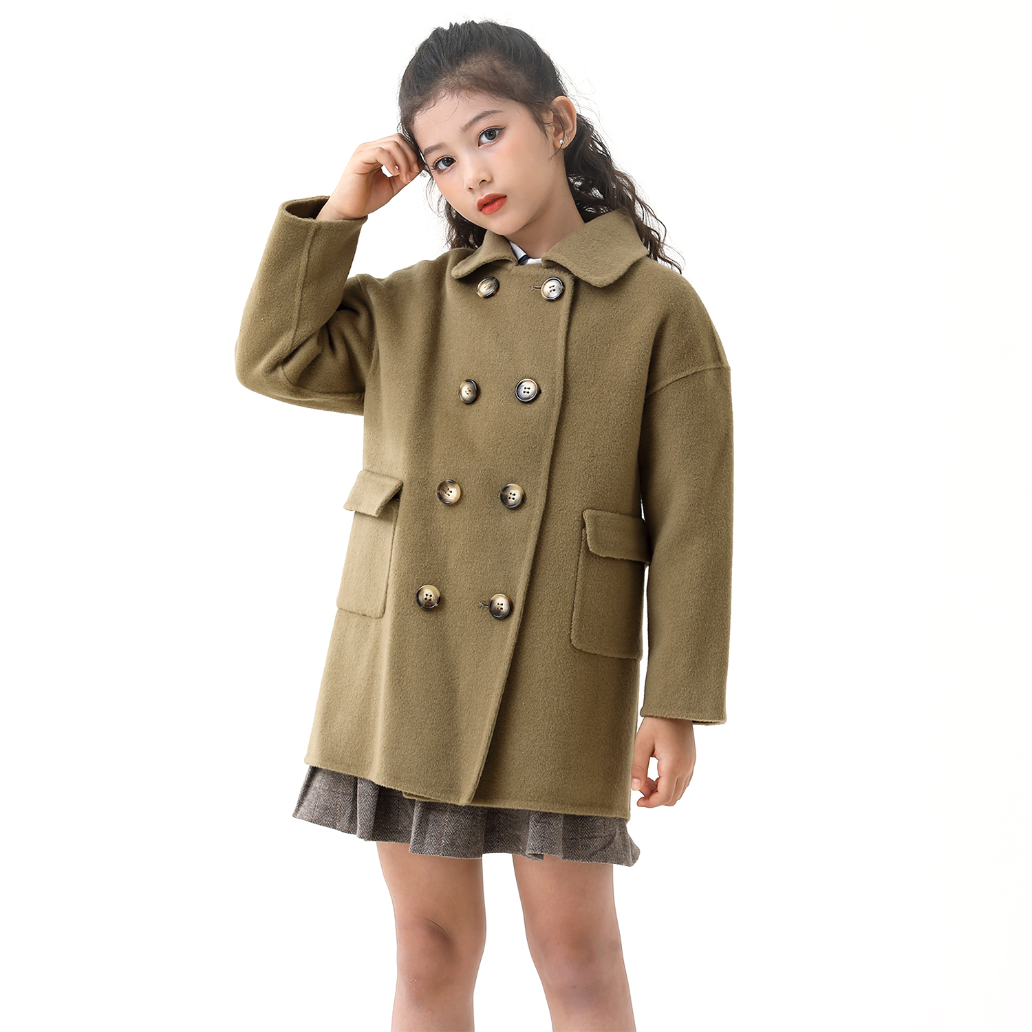 Child Bifacial Cashmere Coat 21 New Winter Thickening Medium Long Version Girl Baby Handmade Wool'S Big Coat