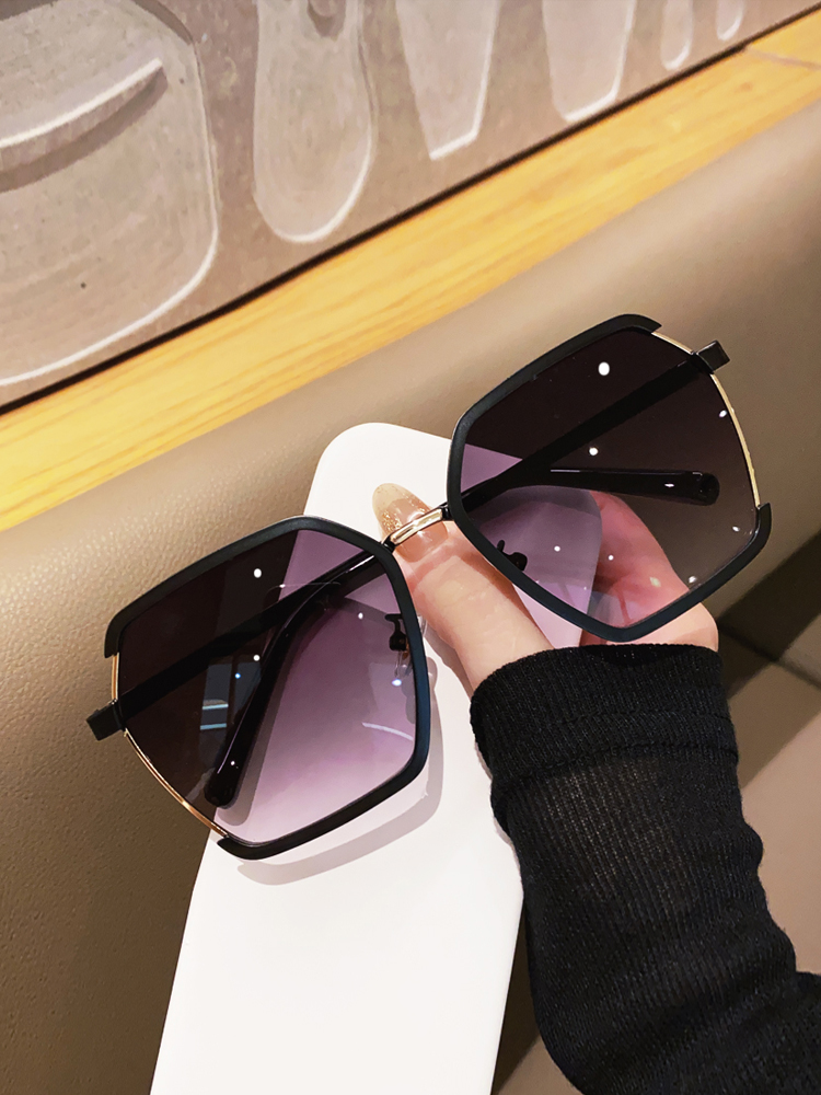 Cospp Kosp Day Ensemble Temperament Metal Half Frame Sunglasses Woman Round Face Street Flak Against UV Travel Sunglasses