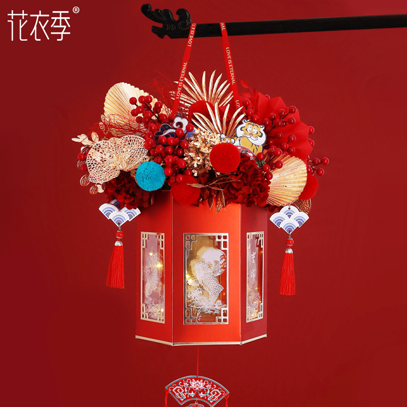 Red gold cute tiger New Year's card wishing lamp (warm color) 2 meters long wishing lamp (white) 2 meters long extra large lobster buckle tassel large round bead tassel medium two-color tassel money string golden eucalyptus gold