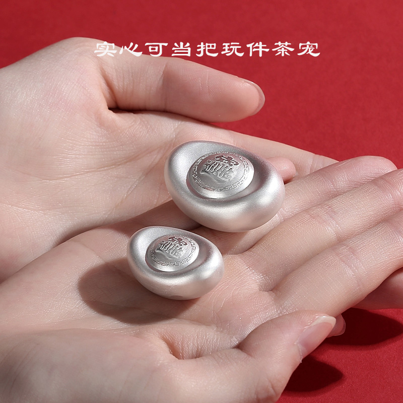 Suzhou Yinlou ancient method silver ingot 9999 pure silver solid silver ingot investment ornament with certificate handle tea pet gift