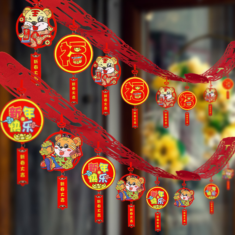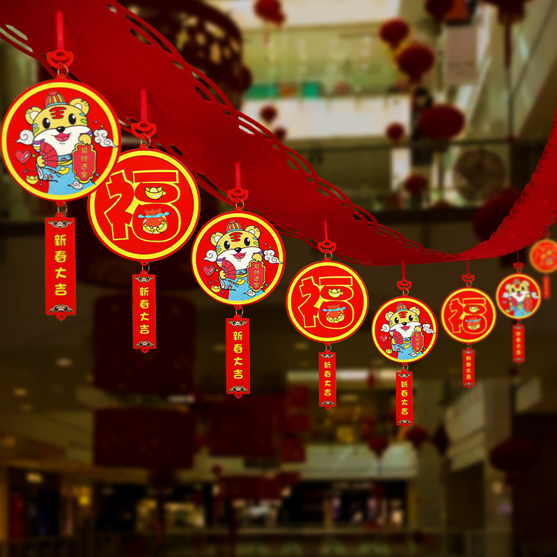 Non-woven bra flower pendant for New Year's decoration 2022 Year of the Tiger Spring Festival indoor shopping mall kindergarten pendant pull flag