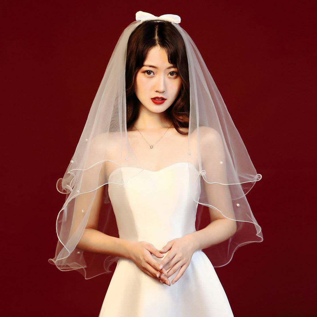Small short veil white (comb) small short veil white (hair clamp) (01) 2 layers of butterfly tip white (02) Sen tissue header white (03) Nail butterfly tip