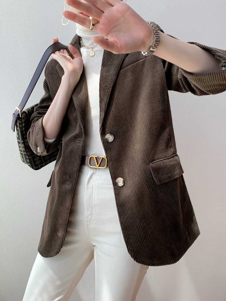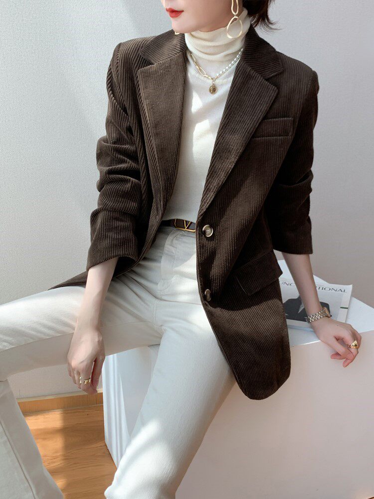 Corduroy suit jacket female small temperament fashion 2022 new slim professional casual suit women's top