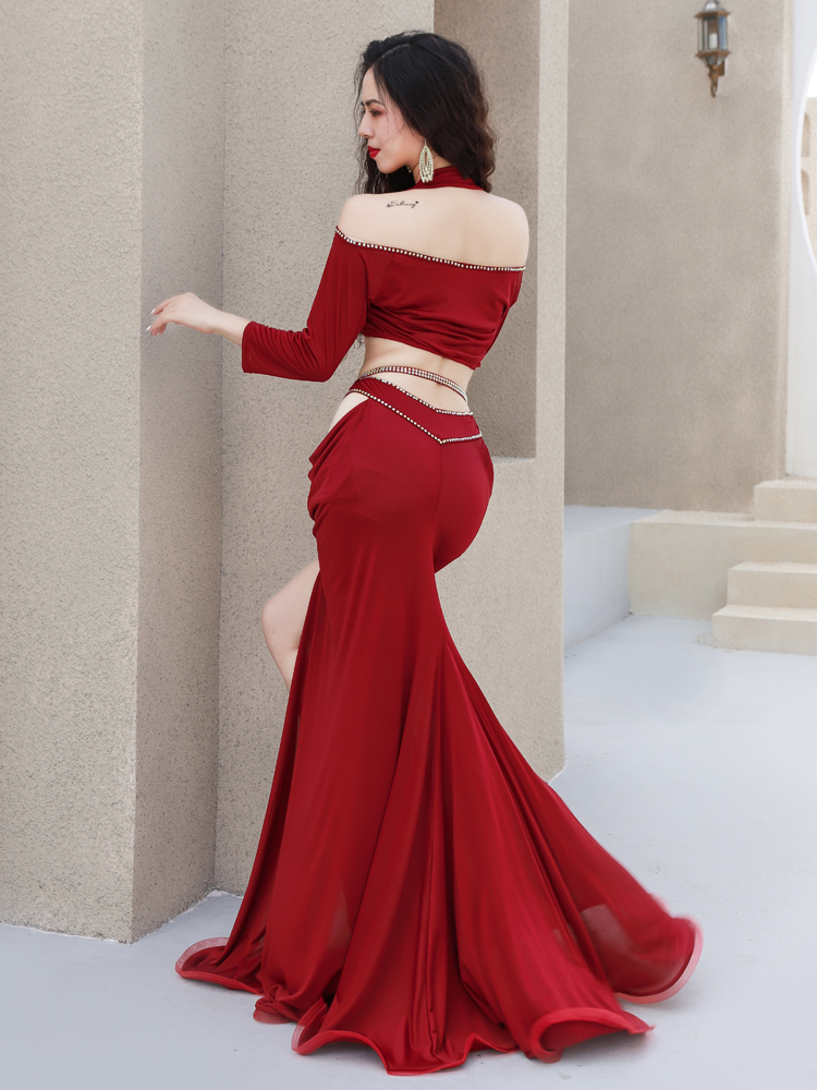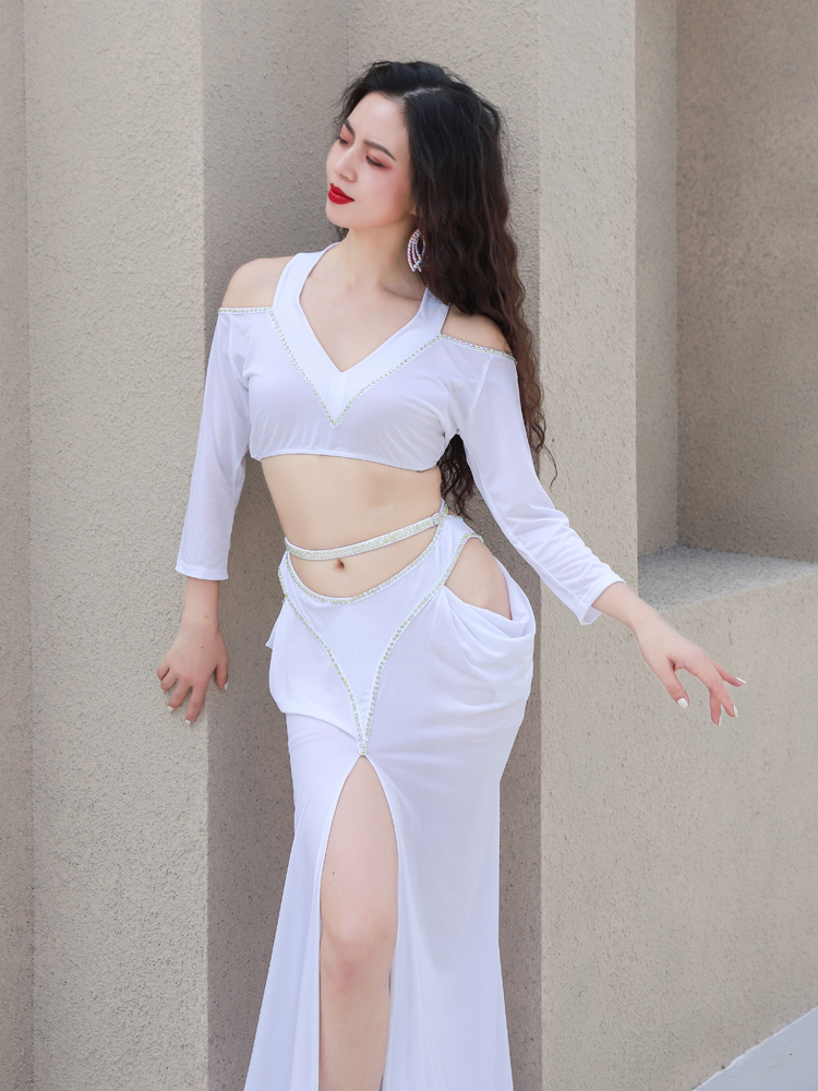 The Leaning City Dance New Belly Dance Suit Featured Hollowed-out Design Long Sleeves Practice Utiliti Light Extravagant Performance 380