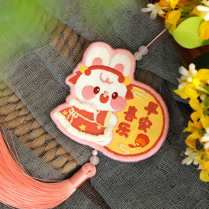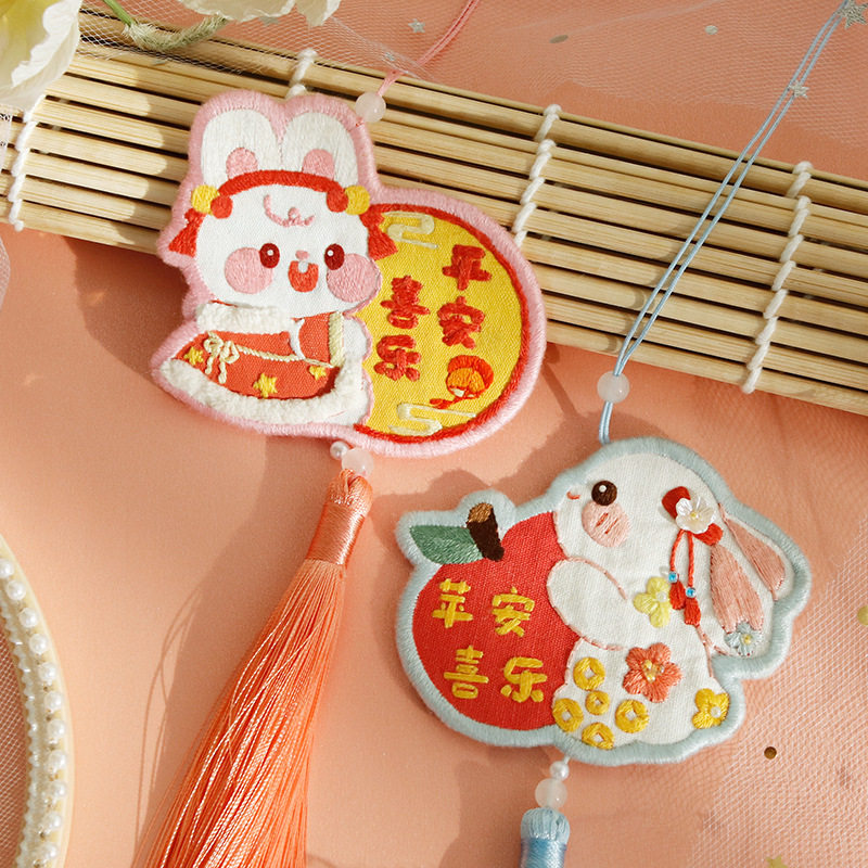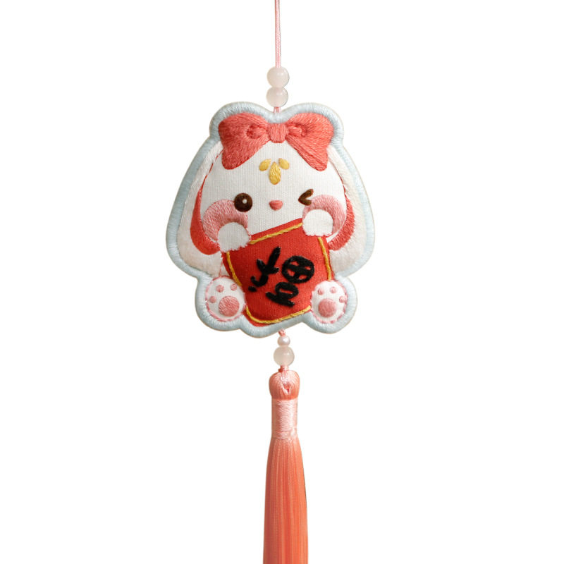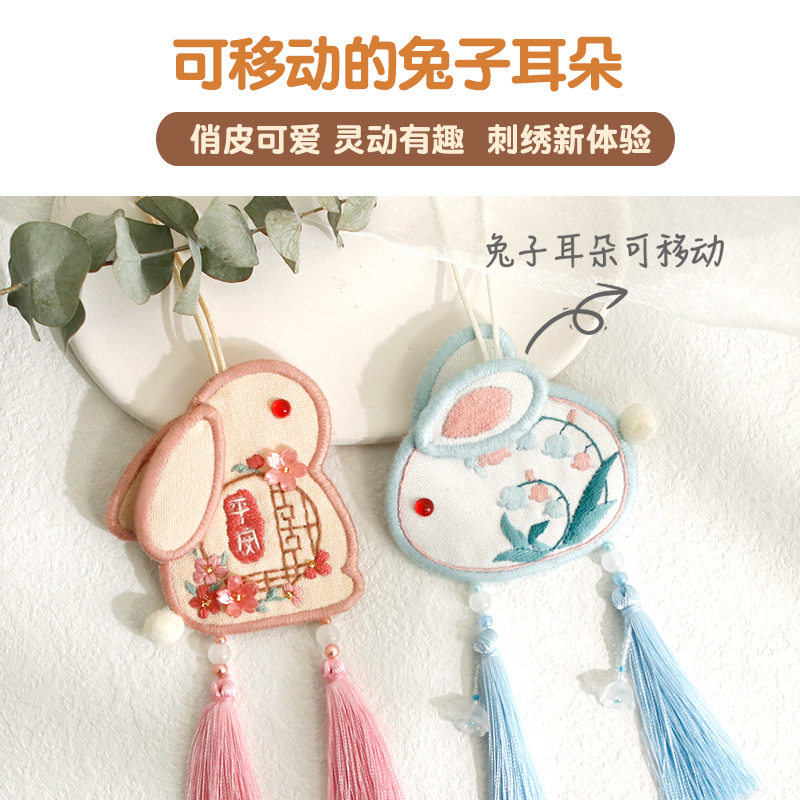 Rabbit Year Embroidered Handmade Diy Material Bag Homemade National Tidal Flat Anfu Rearview Mirror Car Hang Up Boyfriend Bestie Gift