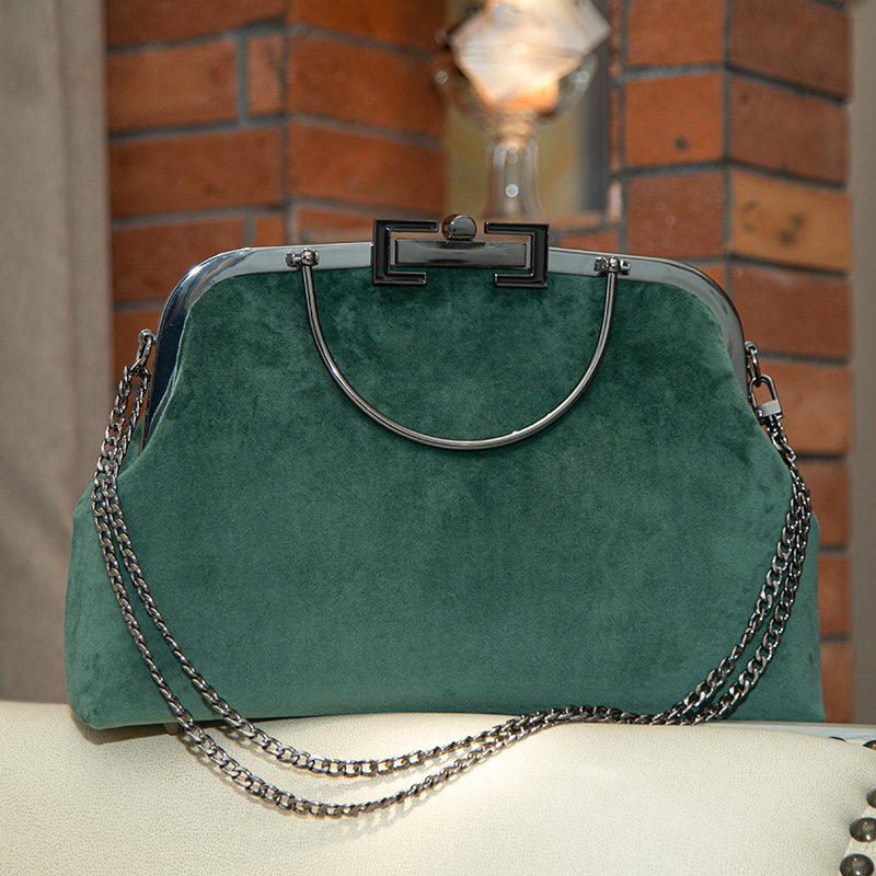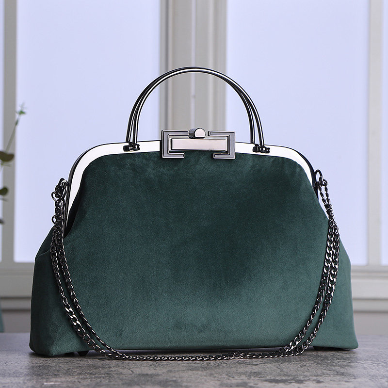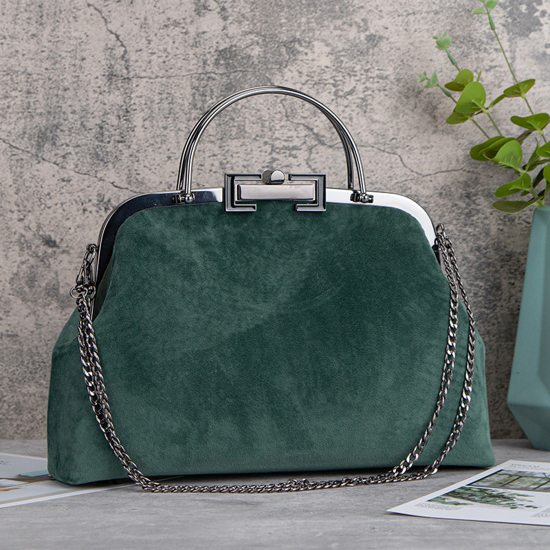 Green suede material bag 421#懒人套装421# of the green suede material.