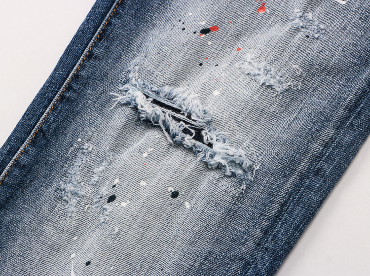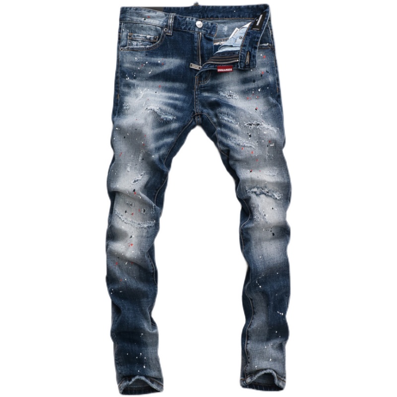 Tse Ting Front The Same Light Color Secondary Square High Street Beggar Repairing the Painting Tide Sign d2 High-end Denim Pants Man Breaking Hole
