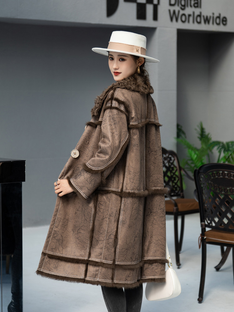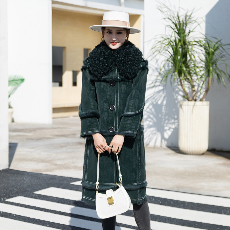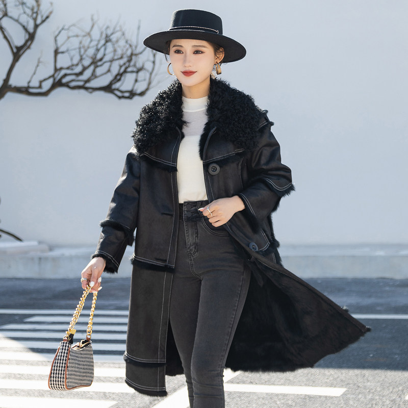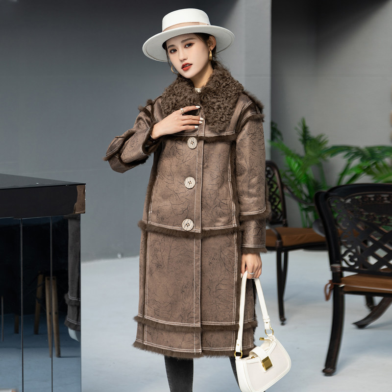 Rabbit fur and fur in winter 2021 new medium and long version lamb fur collar fashion fur coat for young women