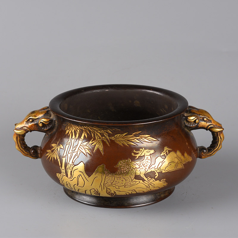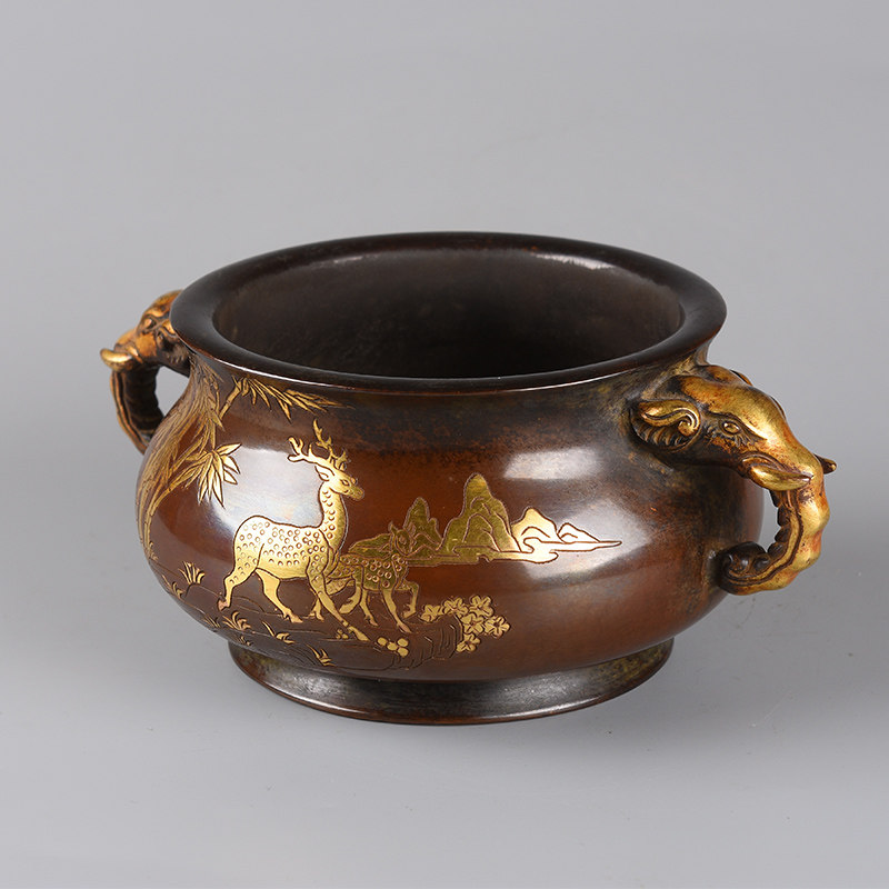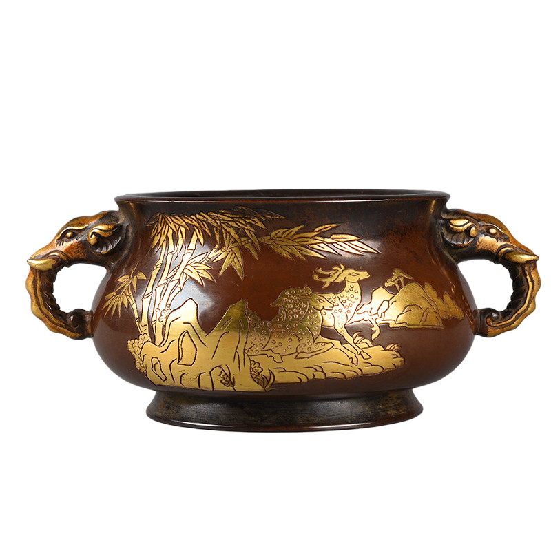 Red Copper Sculpture Flower with Golden Elephant Ear Furnace dedicated to home New Chinese Pendulum Collection Lavender Stove Non-Relic Gift