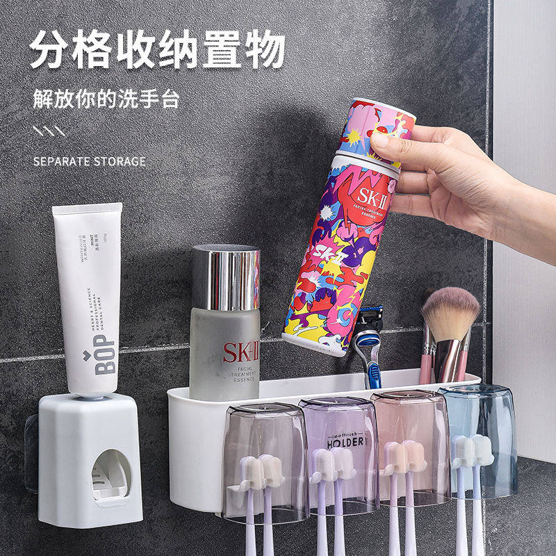 Happiness four-cup toothbrush holder Squeeze toothpaste device Happiness four-cup toothbrush holder Happiness three-cup toothbrush holder