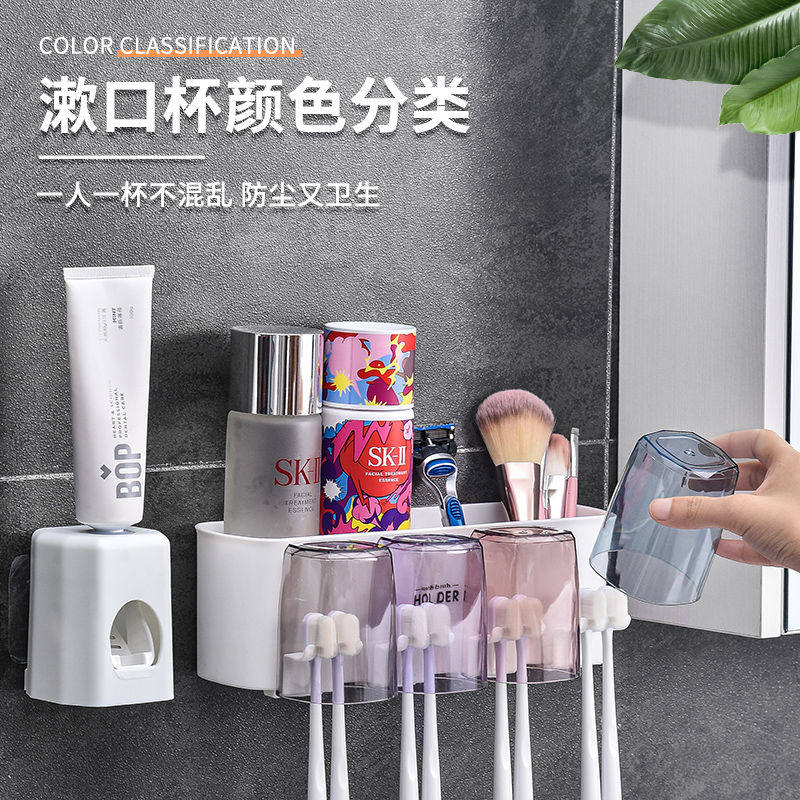 Toothbrush rack free punch mouthwash cup brushing cup dressing room squeeze toothpaste artifact storage box tooth cylinder set
