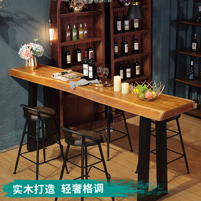 Iron Art Solid Wood Leaning Against Wall Bar Table Home Narrow Table Dining Room Sofa High Foot Table Partition Cabinet Strip Table and chairs Composition